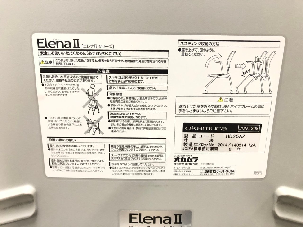 オカムラ製 エレナⅡ ロット入荷 レア おすすめ 入れ替え 新規購入 会議室 ミーティング用 ネスティングチェア