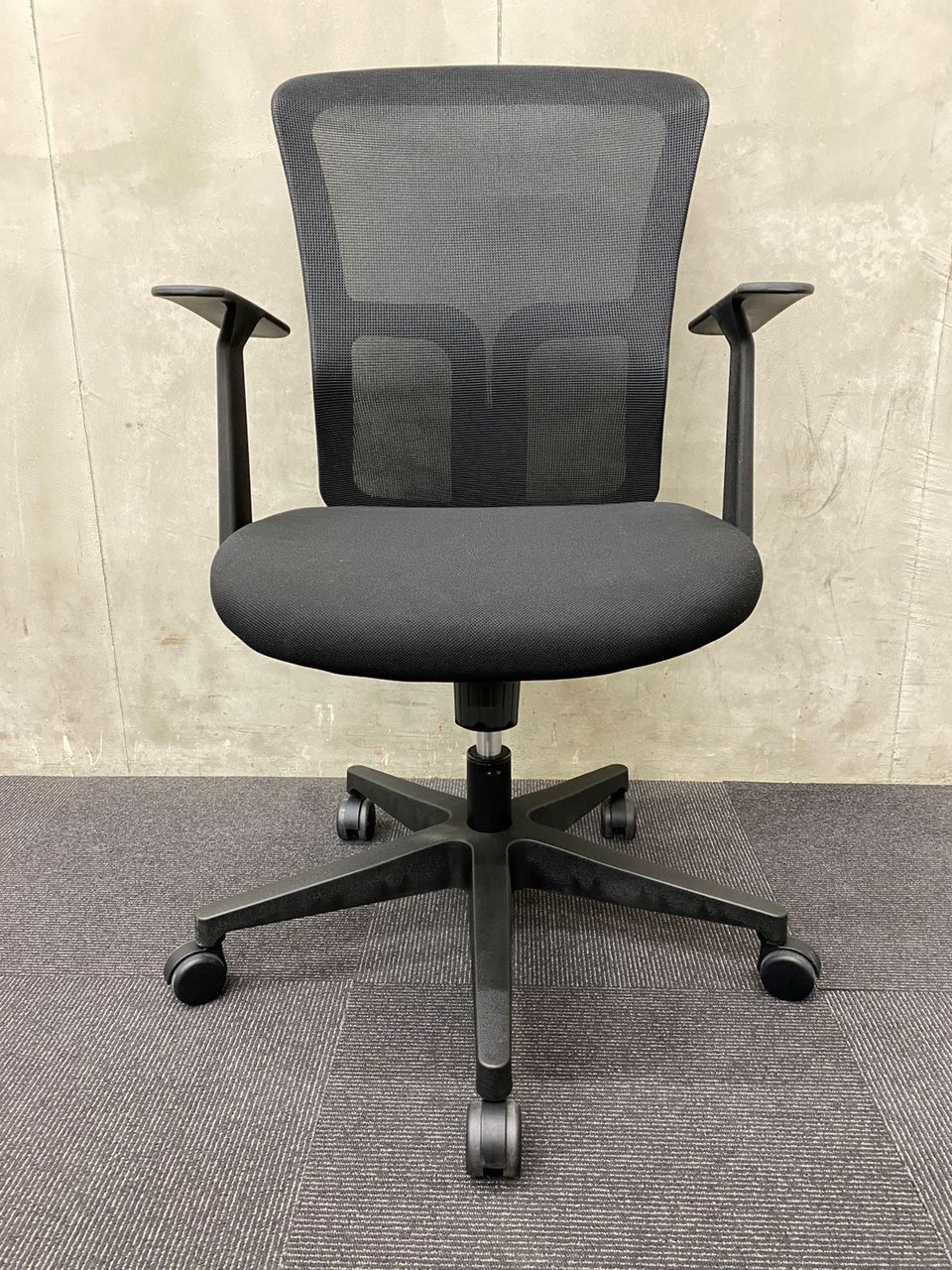 新品/オフィス用チェア/肘付/サークル肘【美品】【メッシュチェア】ブラック