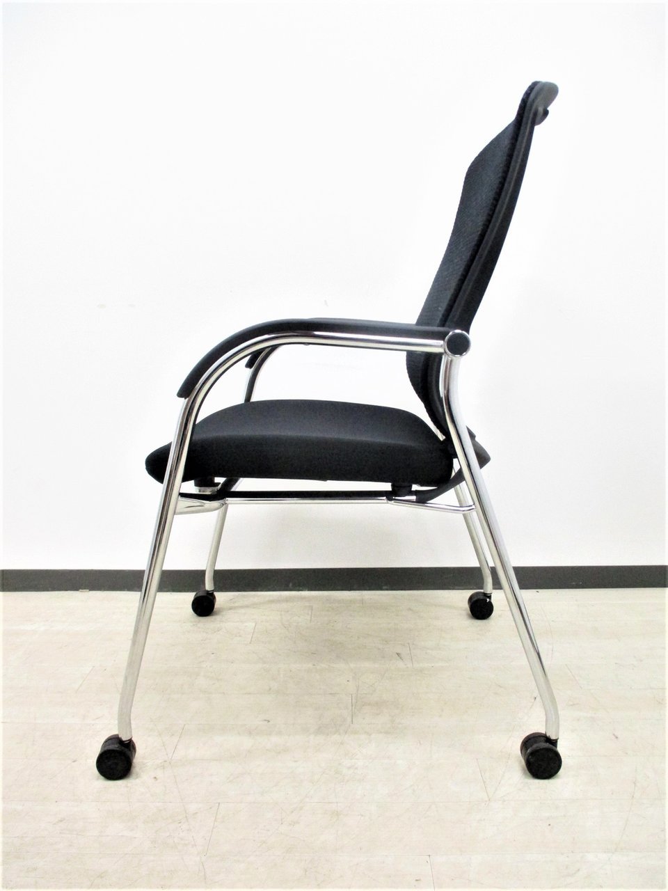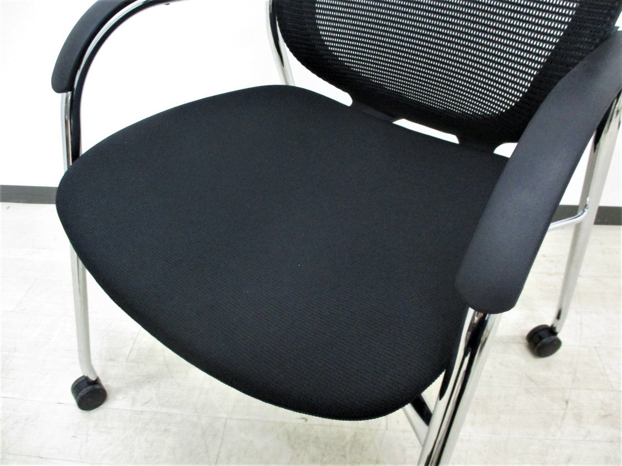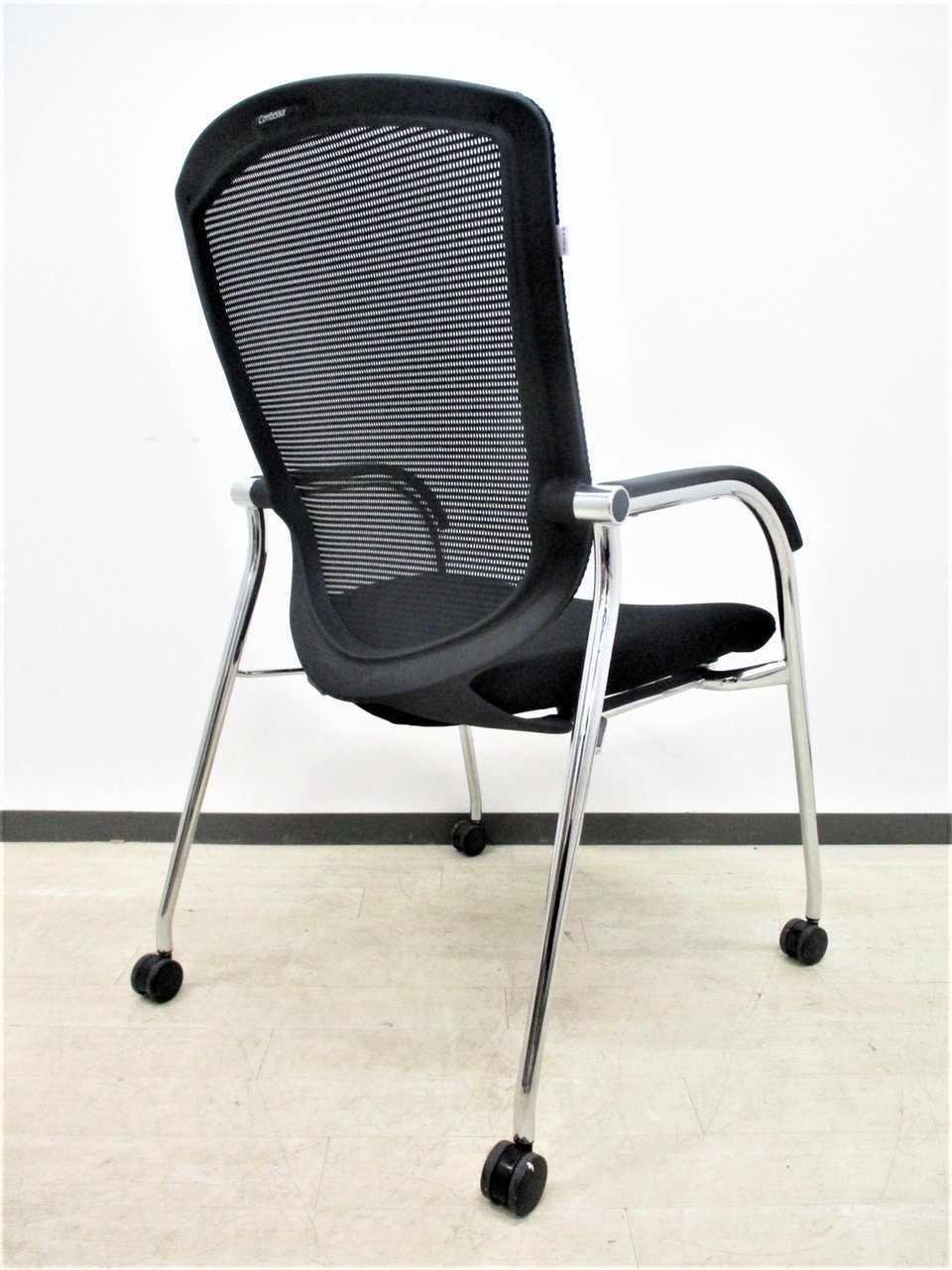【オフィシャルな空間にふさわしいデザイン!】■オカムラ製 コンテッサシリーズ ゲストチェア キャスター脚 ブラック【おつとめ品】