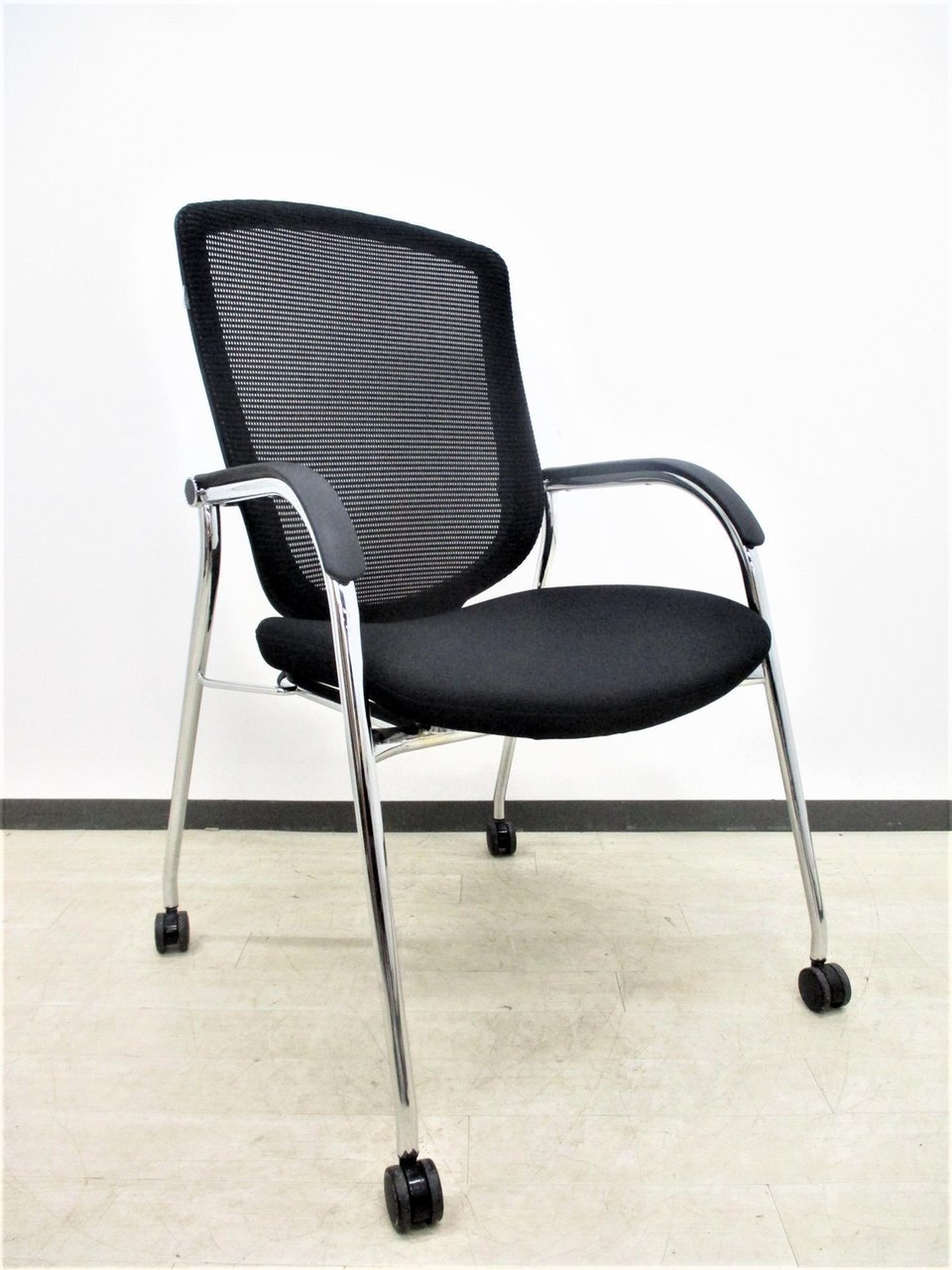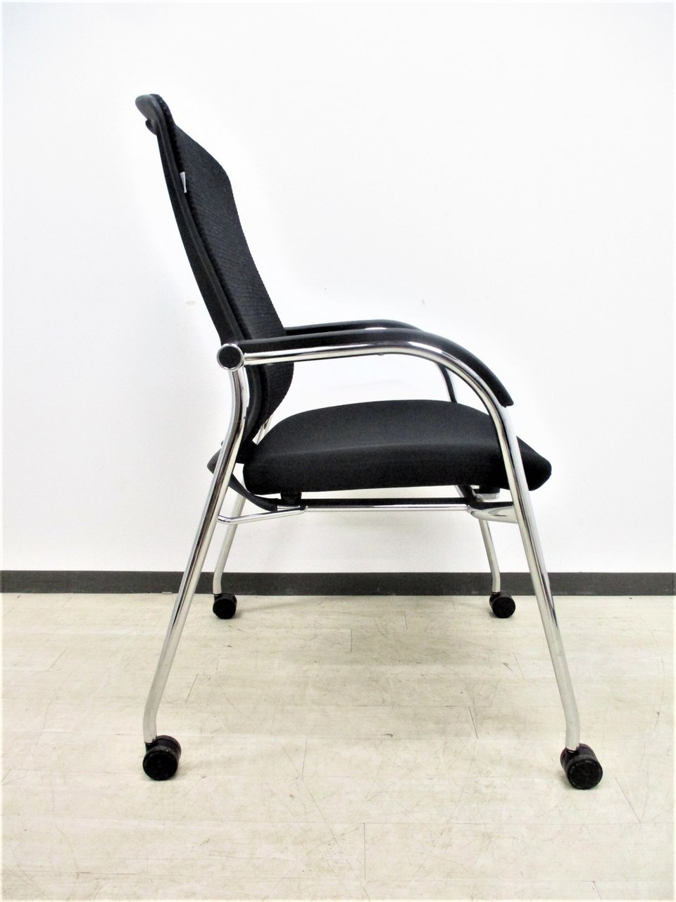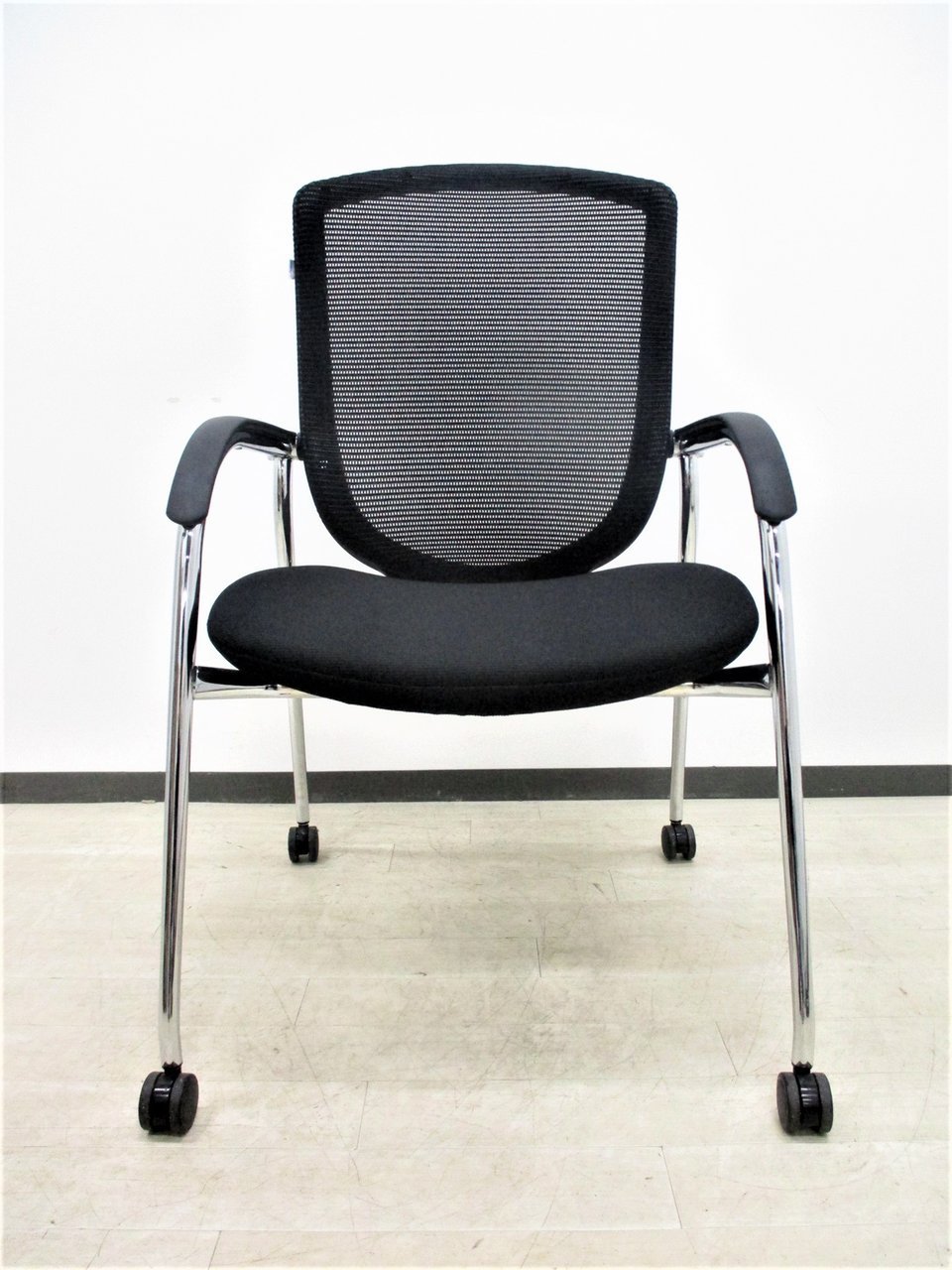 【オフィシャルな空間にふさわしいデザイン!】■オカムラ製 コンテッサシリーズ ゲストチェア キャスター脚 ブラック【おつとめ品】