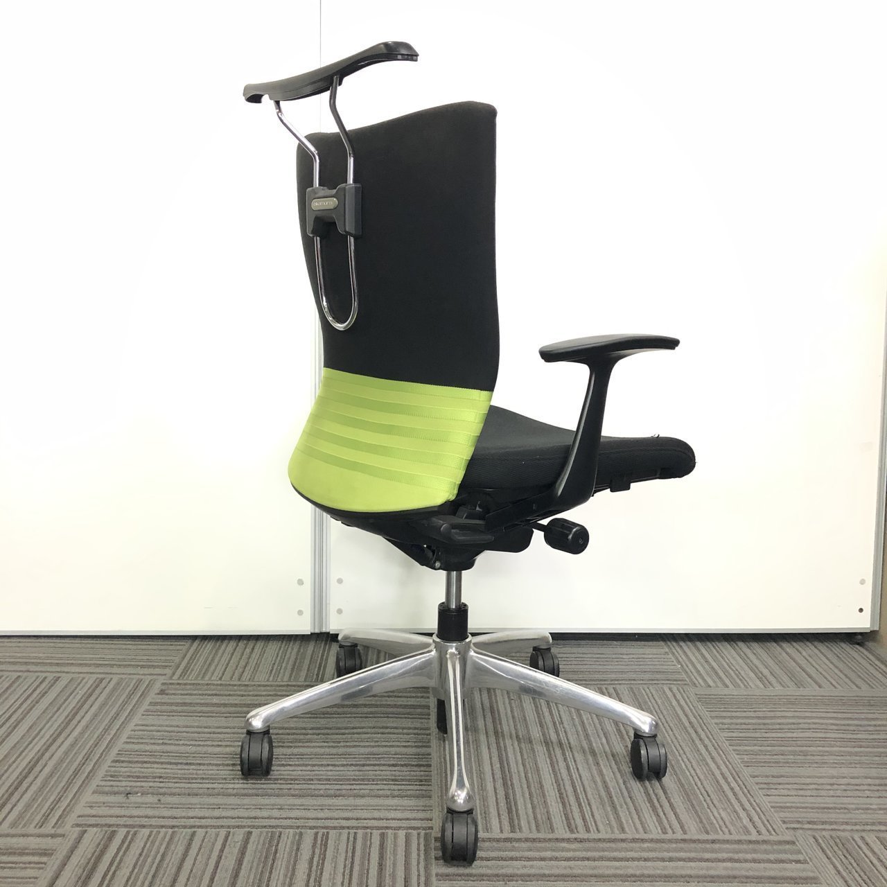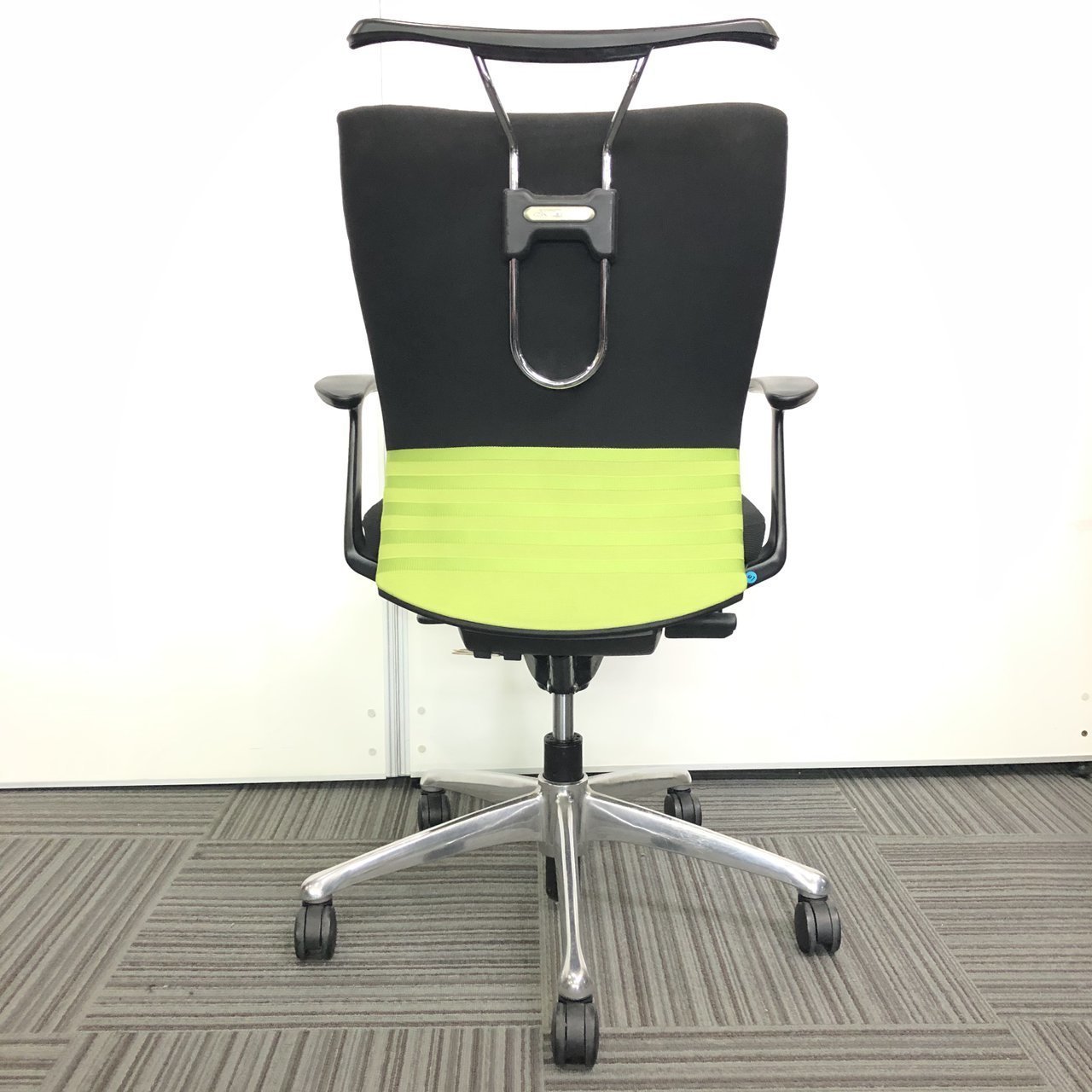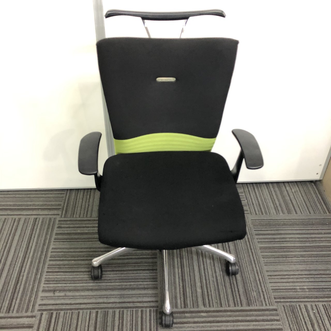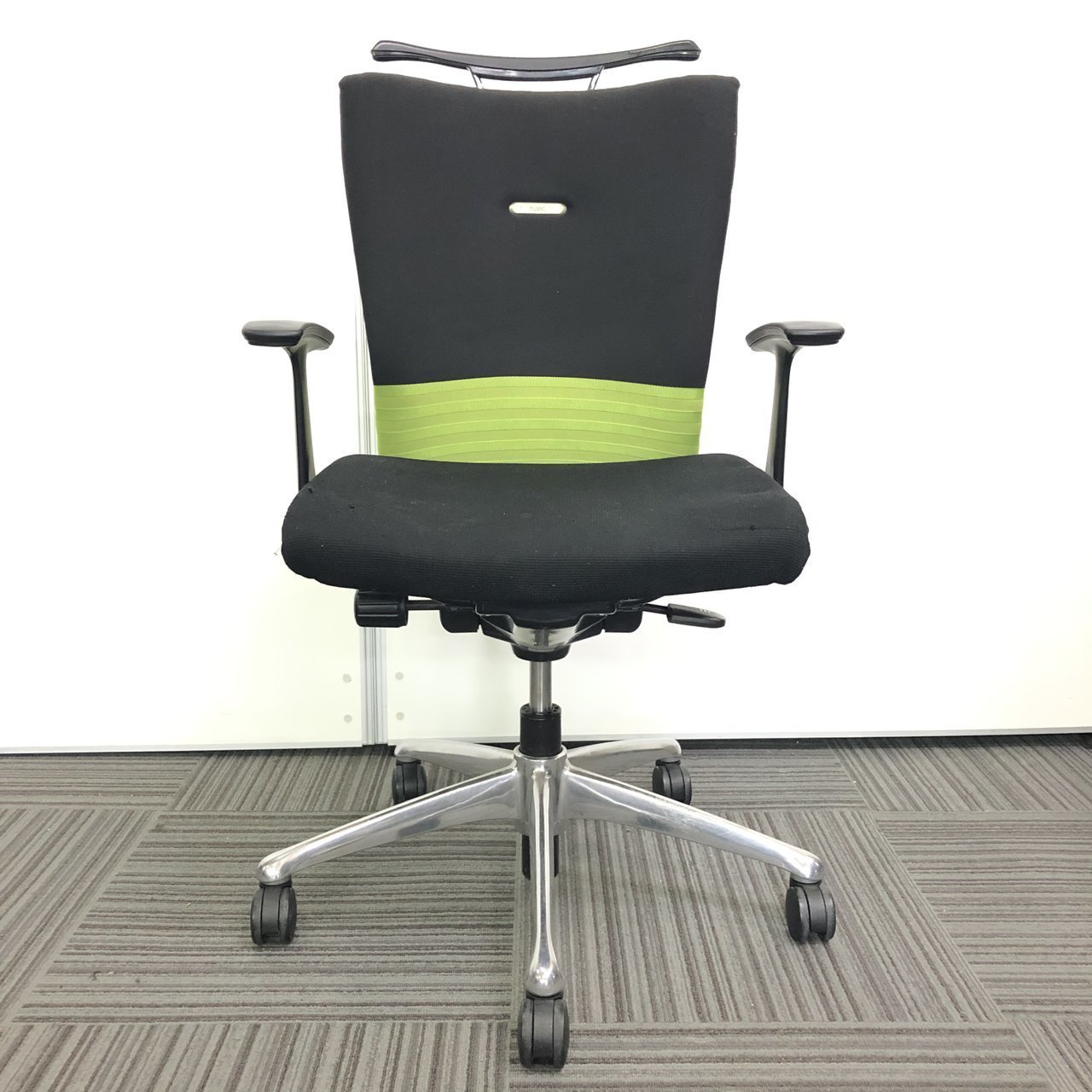 【人気商品】【残り3脚】オカムラ製 フィーゴ ブラック×グリーンカラー【肘付き】【リクライニング】