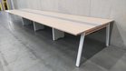 幅5600mm【オフィスのフリーアドレス化にも!】 明るい木目天板にホワイトの脚が映える! オカムラ/マニフォールド 【倉庫在庫品】オレンジエンブレム- 全店共通商品