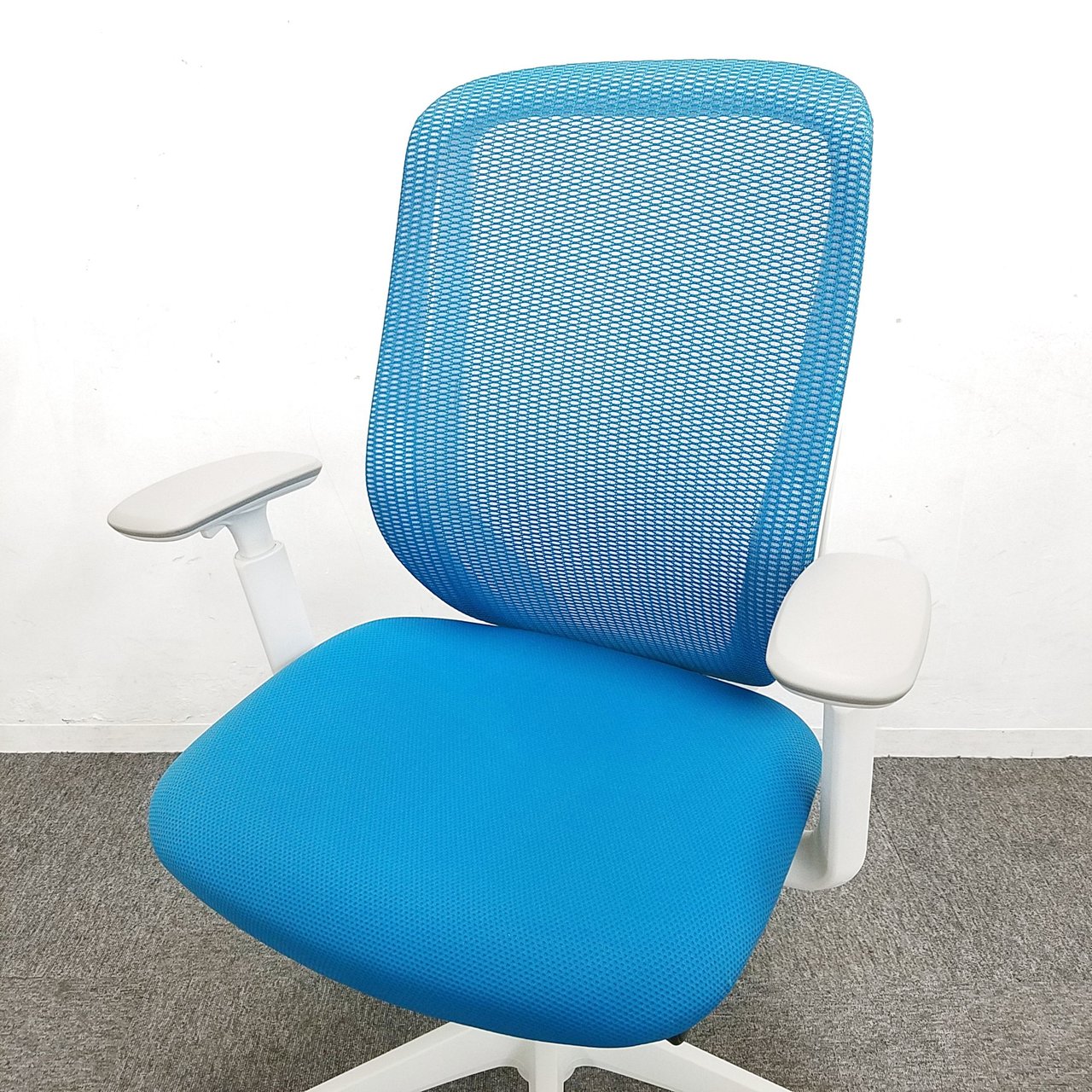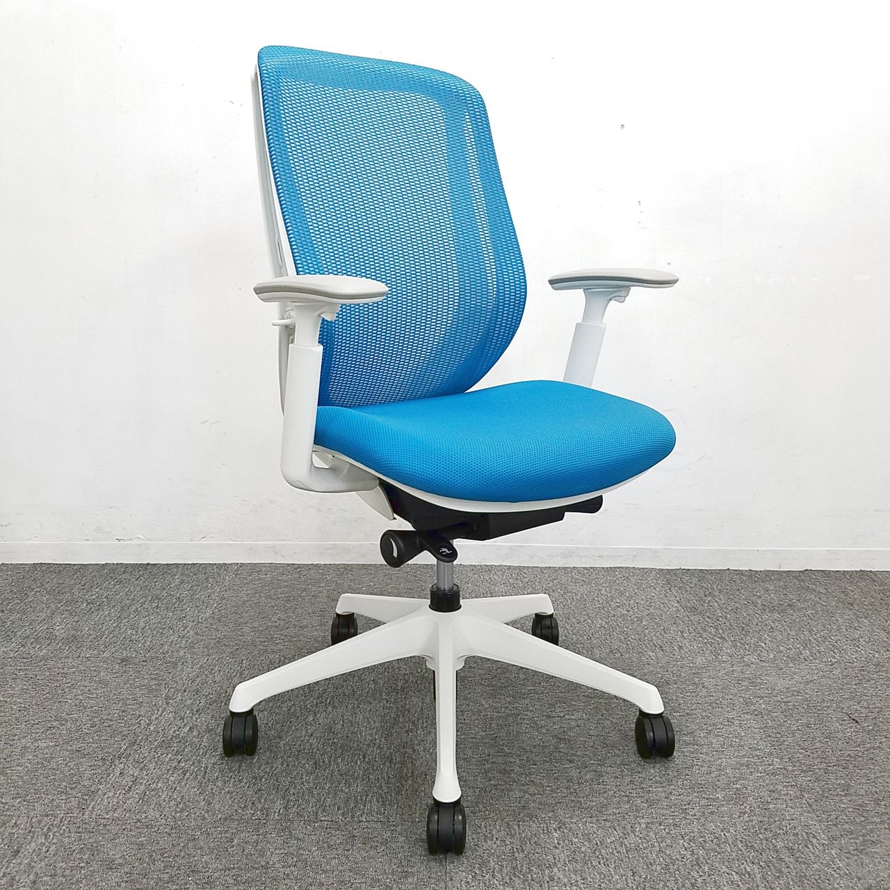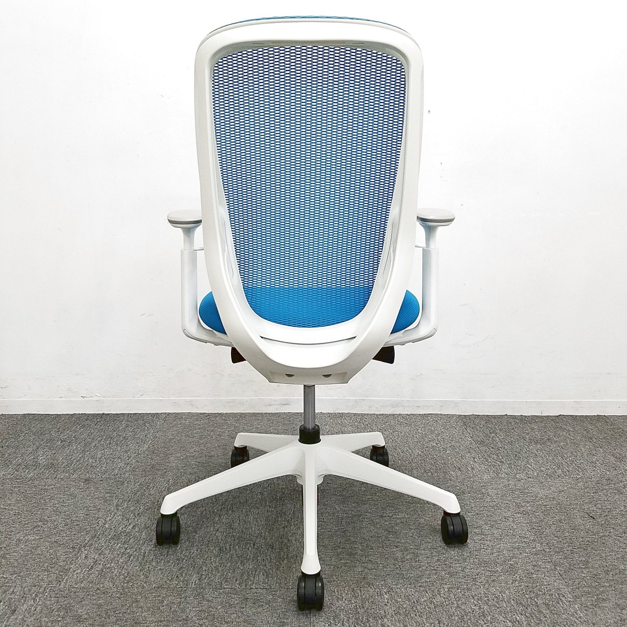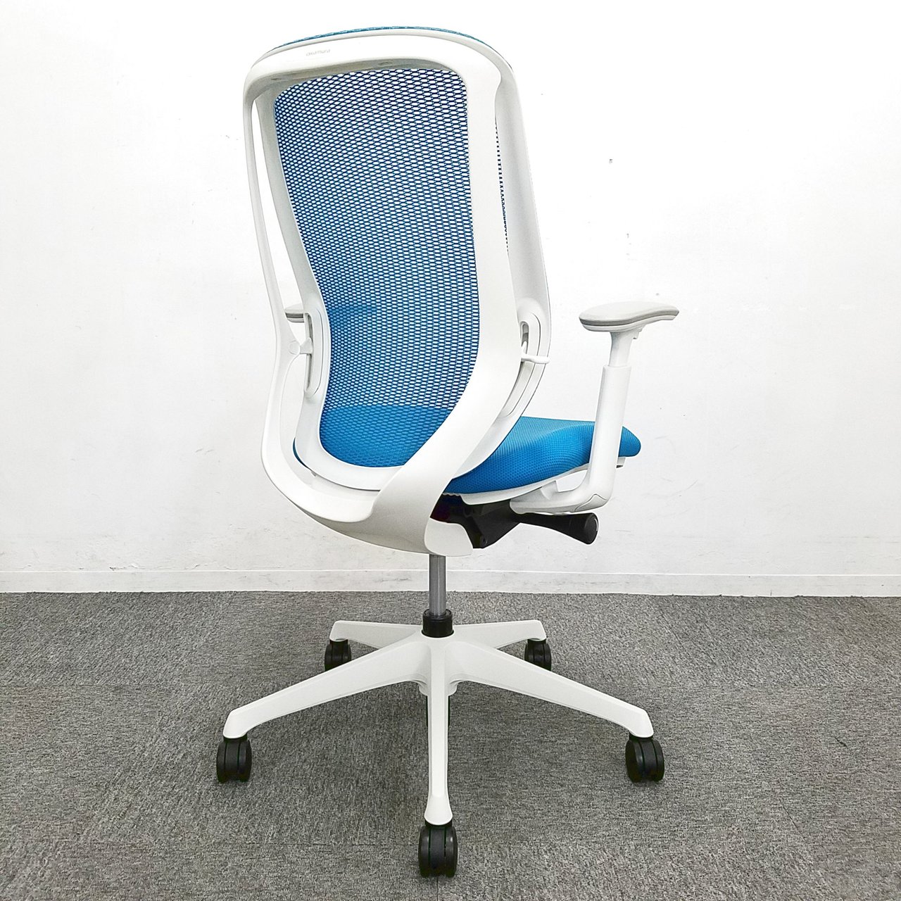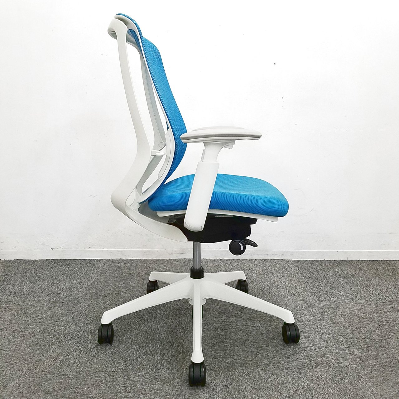 【専門業者によるクリーニング済み!】ターコイズブルーシルフィー(Sylphy)チェア※希少ホワイトフレーム&前傾機能付◆オカムラ製