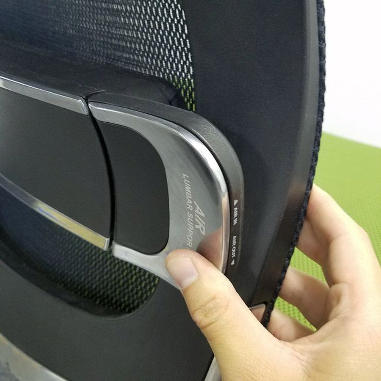 - 自由に変形し、力を分散させながら反発する空気の特性によって腰をサポート。ランバー部の前後幅は0~40mm、上下幅は100mmの調整が可能で、個人個人の異なる背骨形状にフィットします。