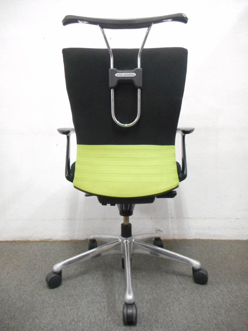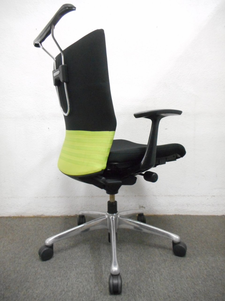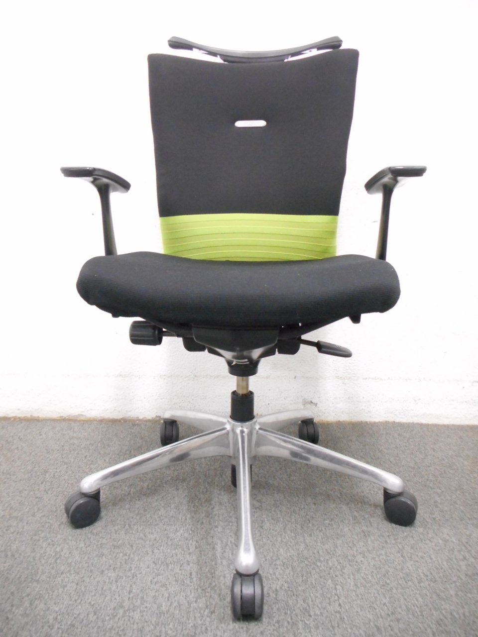 【人気商品】【残り3脚】オカムラ製 フィーゴ ブラック×グリーンカラー【肘付き】【リクライニング】