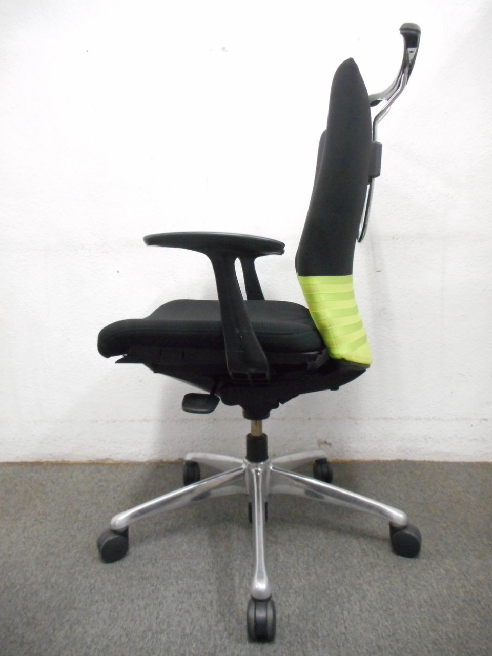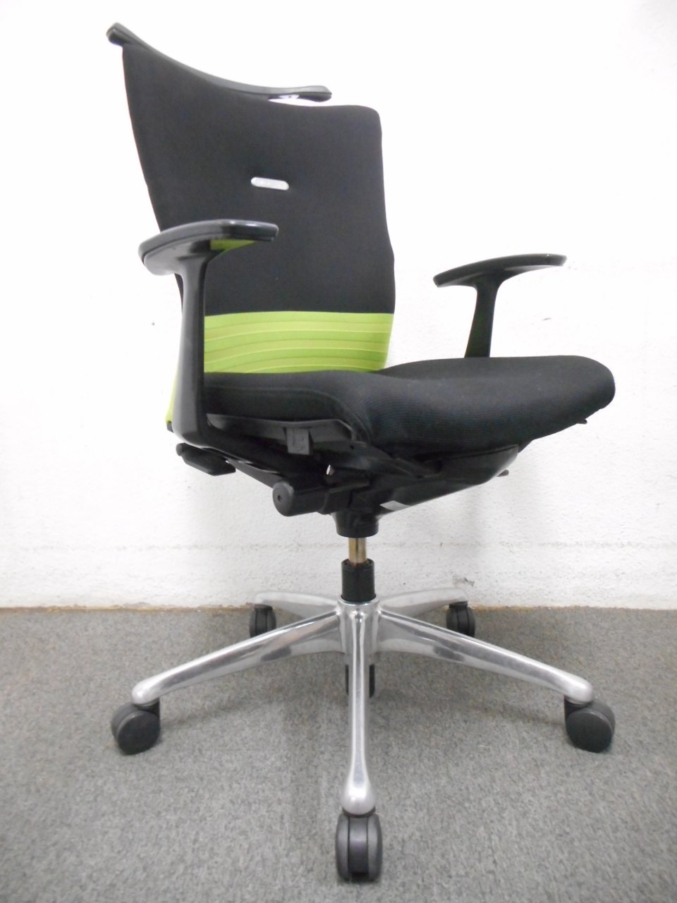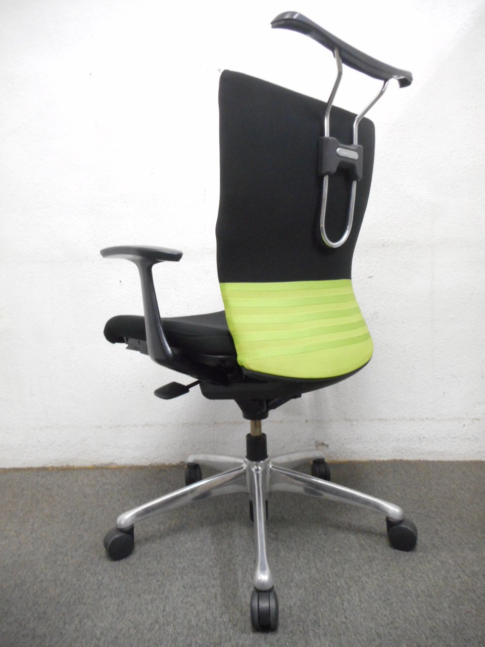 【人気商品】【残り3脚】オカムラ製 フィーゴ ブラック×グリーンカラー【肘付き】【リクライニング】