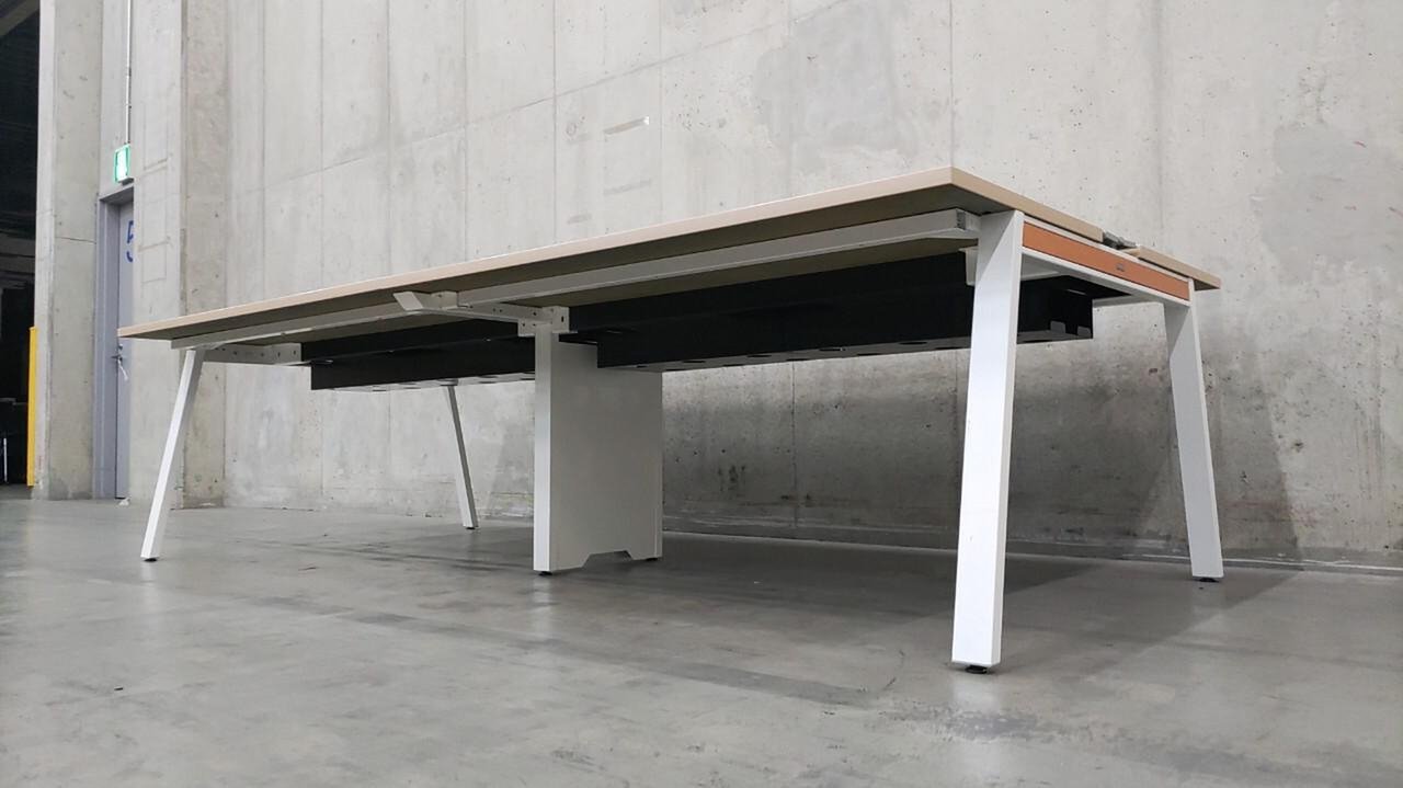 幅2800mmコロナ対策にフリアド導入!明るい木目天板にホワイトの脚が映える! オカムラ/マニフォールド オレンジエンブレム- つくば店