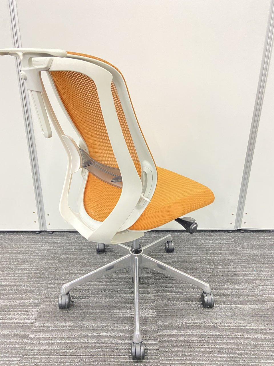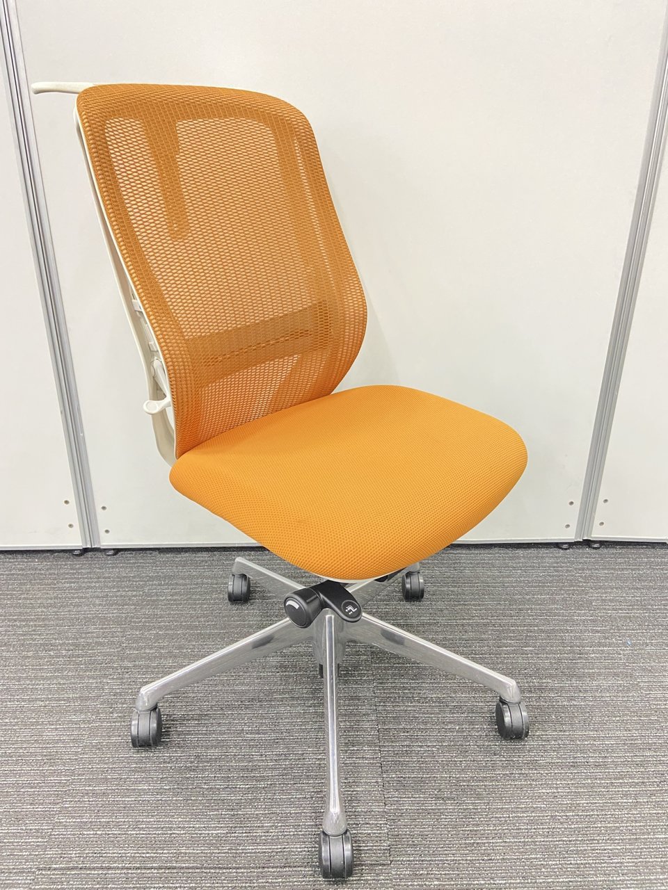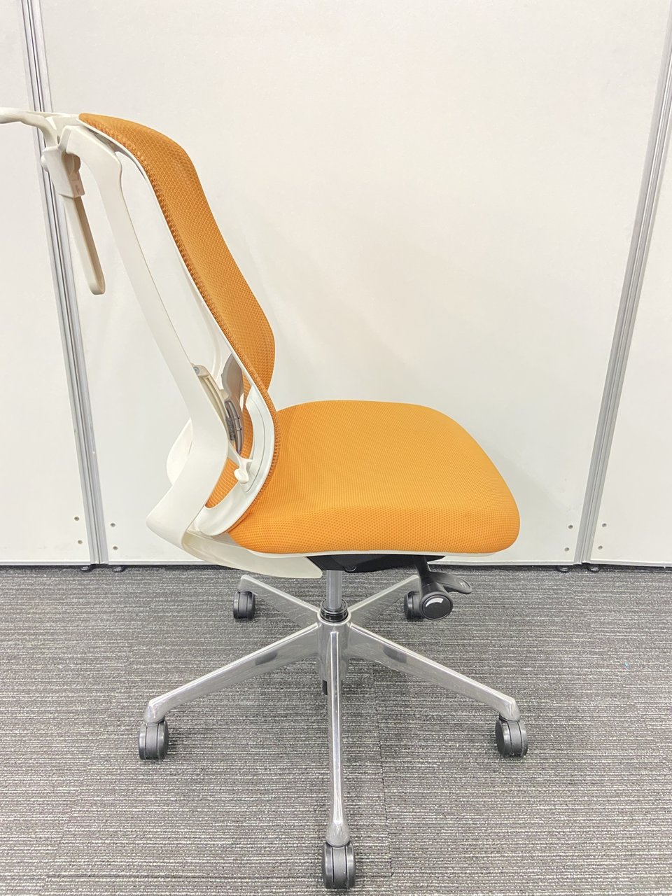 オカムラ製 シルフィーチェア オレンジカラー 状態良好 肘無しハイバックチェア ロット レア 在宅ワーク 肘無しの為省スペース