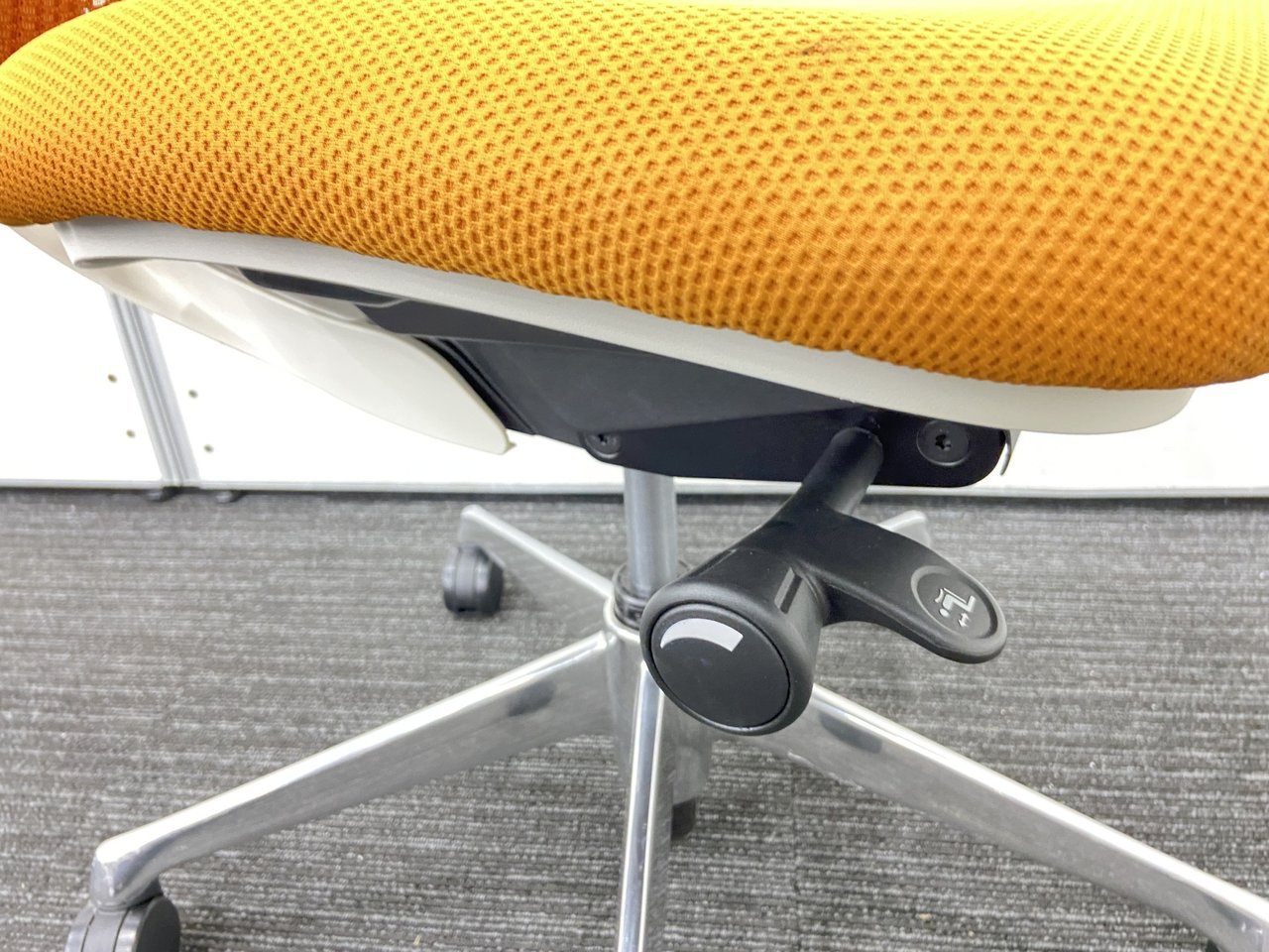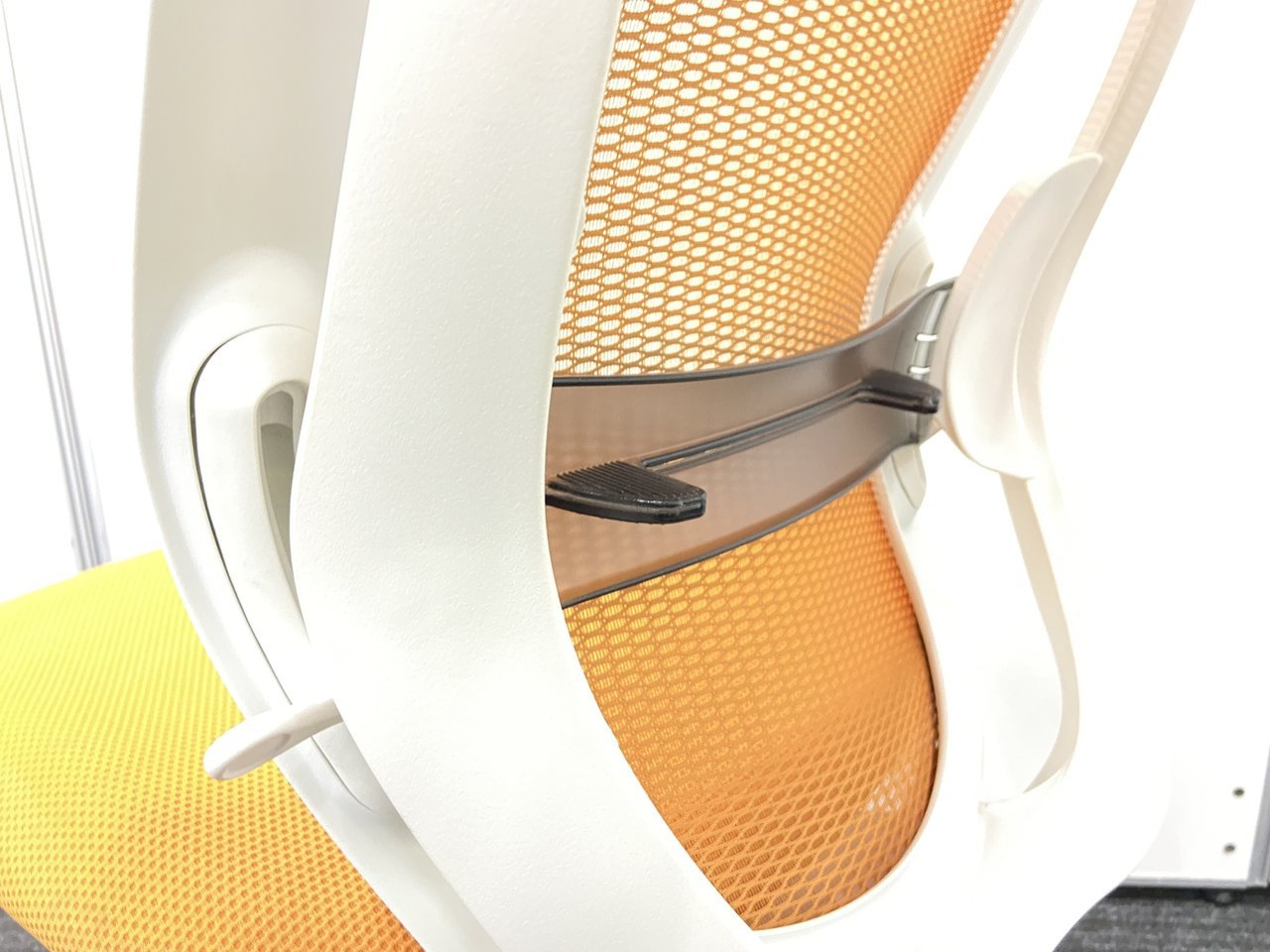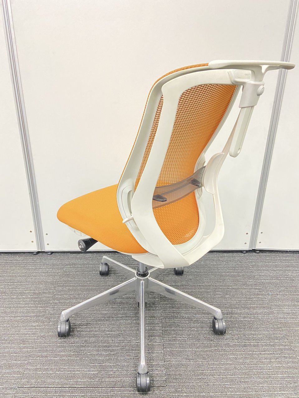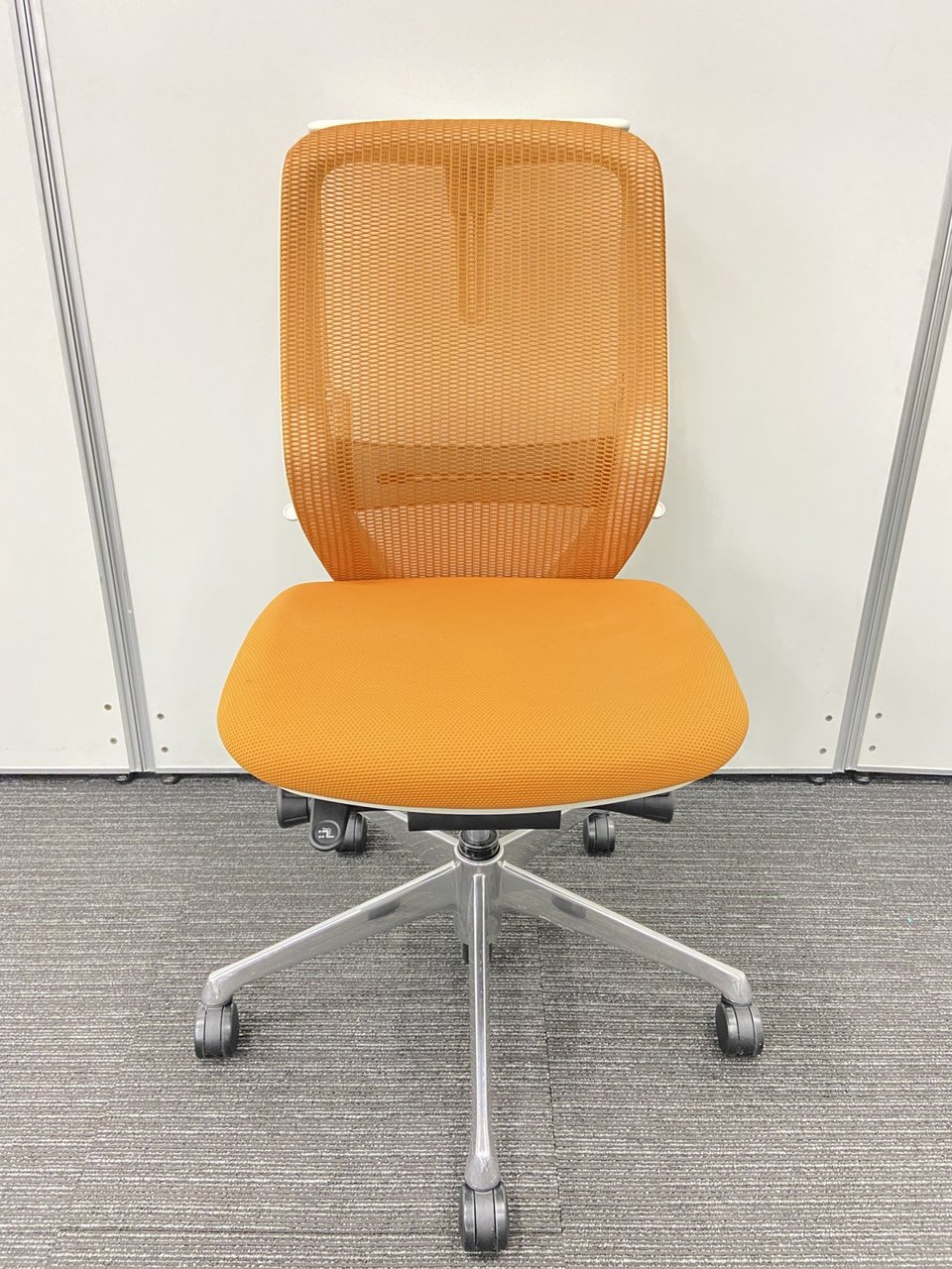 オカムラ製 シルフィーチェア オレンジカラー 状態良好 肘無しハイバックチェア ロット レア 在宅ワーク 肘無しの為省スペース