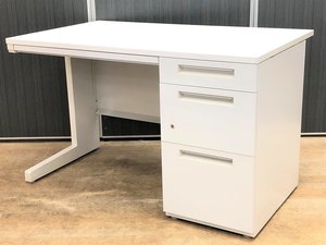 【W1200mmの片袖デスク】イナバ製デュエナデスク【ホワイトだからオフィスが明るく!清潔感UP!】