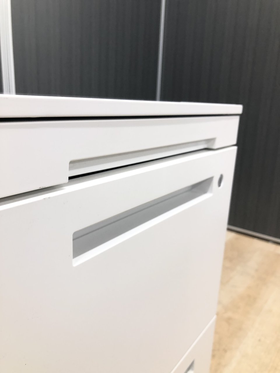 - 一部不具合ありその脇机・ワゴンの本来の効用を果たすための機能以外の一部が使用不可な状態。(例、引出が開閉しづらい、 キャスターロック機能使用不可、ラッチ不良 等がある。)