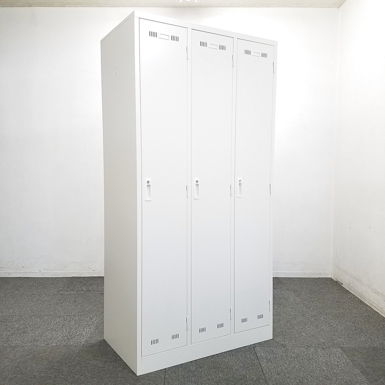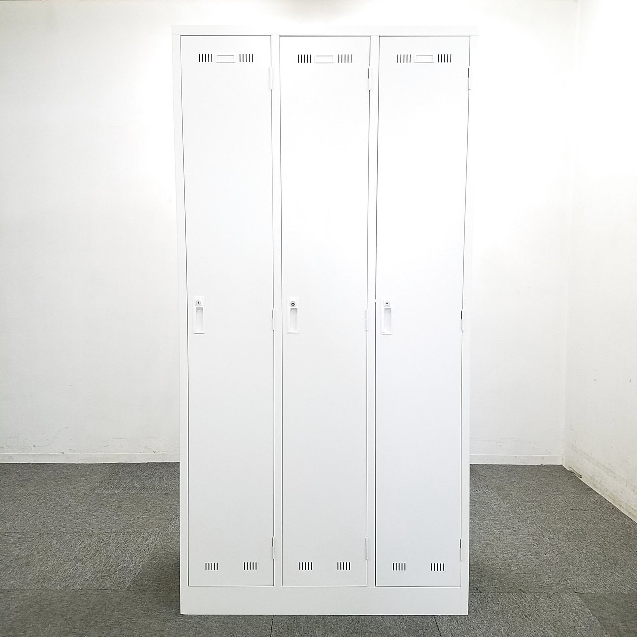 【大量入荷】鍵2本付き!人気のホワイト3人用ロッカー入荷!中古 ロッカー 更衣室 鍵付き 【メーカー在庫にて保管】新古