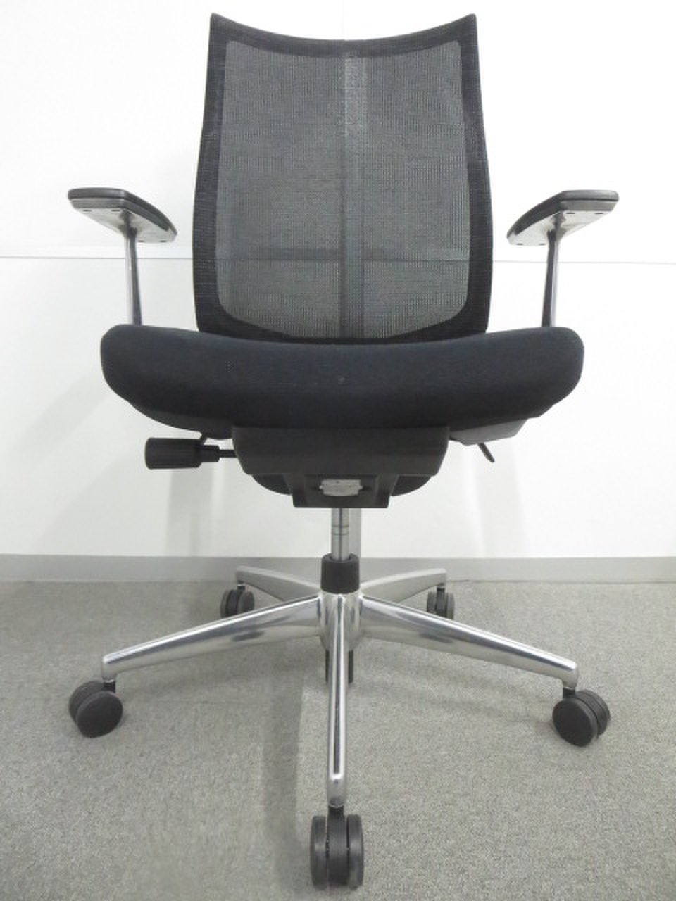 【肘に傷あり】【専門業者によるクリーにング済み!】コクヨ製 ベゼルチェア 固定肘 ブラック