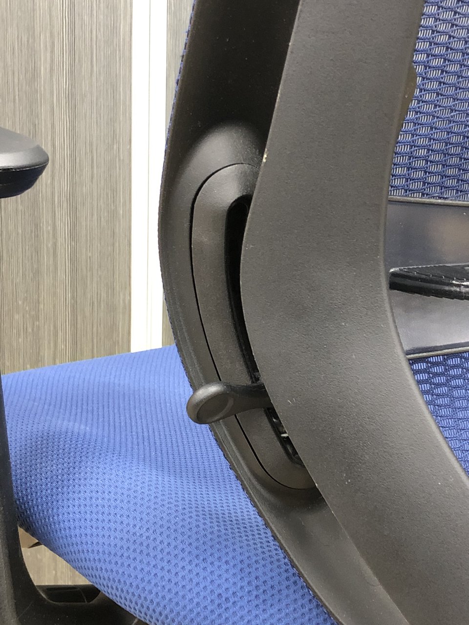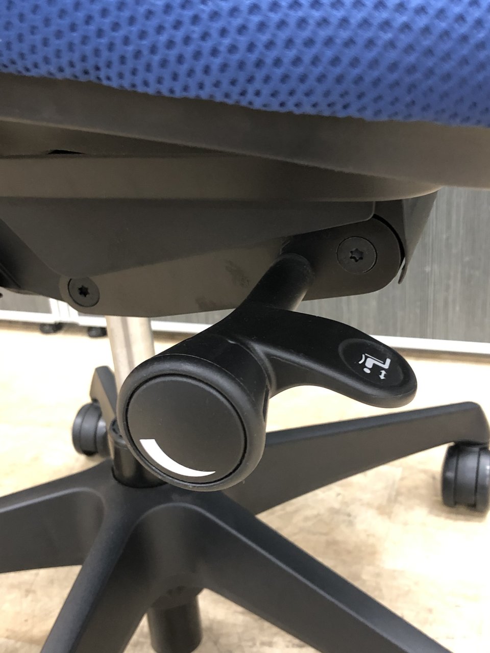 - 座面右下のダイヤル操作で、リクライニングの強弱調整が行えます。これまでのダイヤル式よりも、少ない回転数で、最弱?最強の調整が可能です。