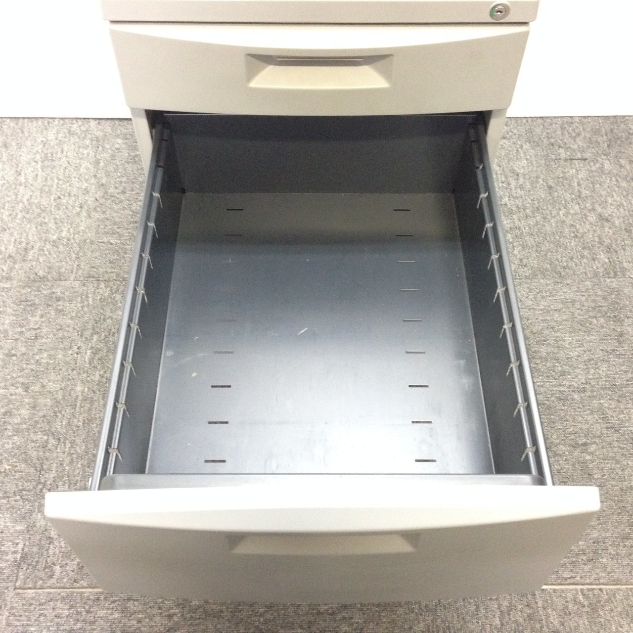 - 一部不具合ありその脇机・ワゴンの本来の効用を果たすための機能以外の一部が使用不可な状態。(例、引出が開閉しづらい、 キャスターロック機能使用不可、ラッチ不良 等がある。)