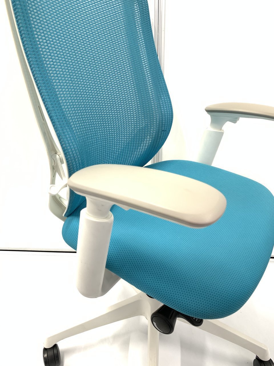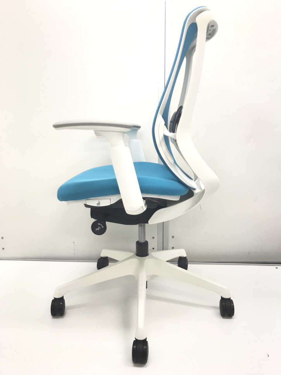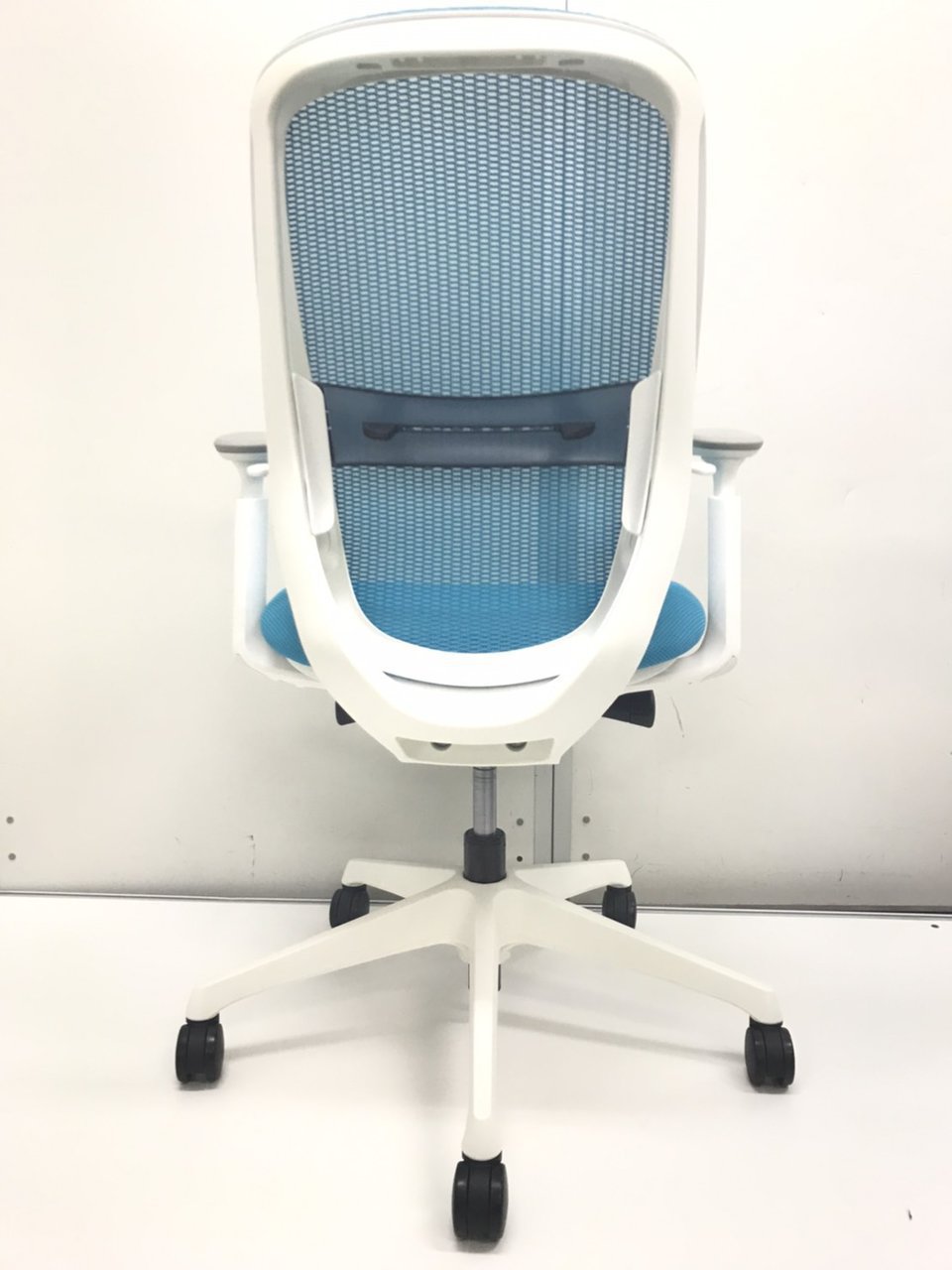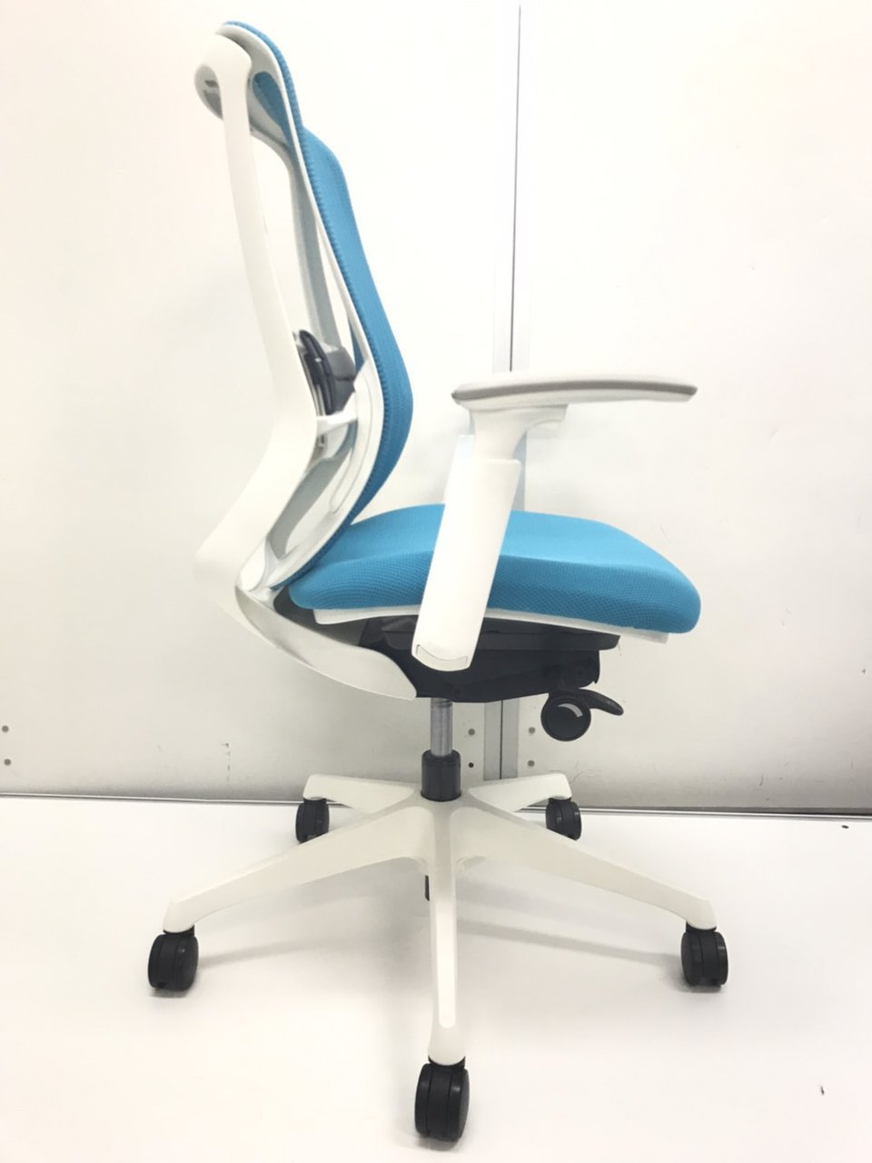 【専門業者によるクリーニング済み!】ターコイズブルーシルフィー(Sylphy)チェア※希少ホワイトフレーム&前傾機能付◆オカムラ製