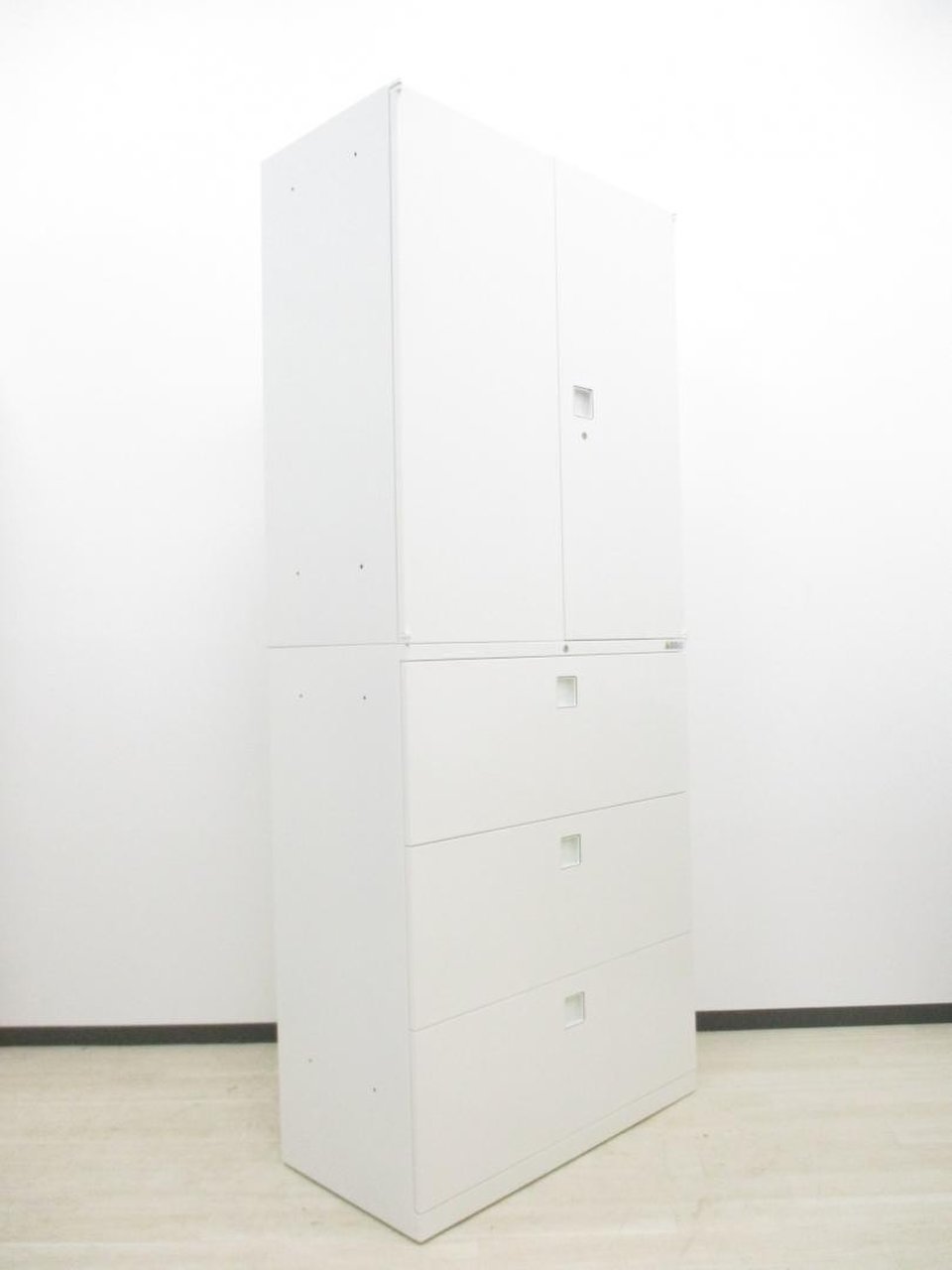【上下書庫セット】【両開き(上)×3段ラテラル(下)】【オカムラ】【レクトライン】【ホワイト】【4台】