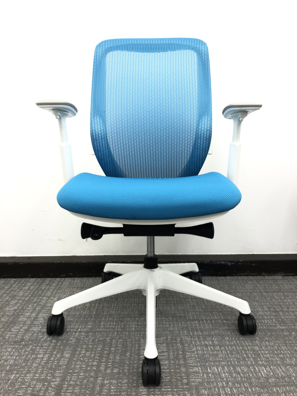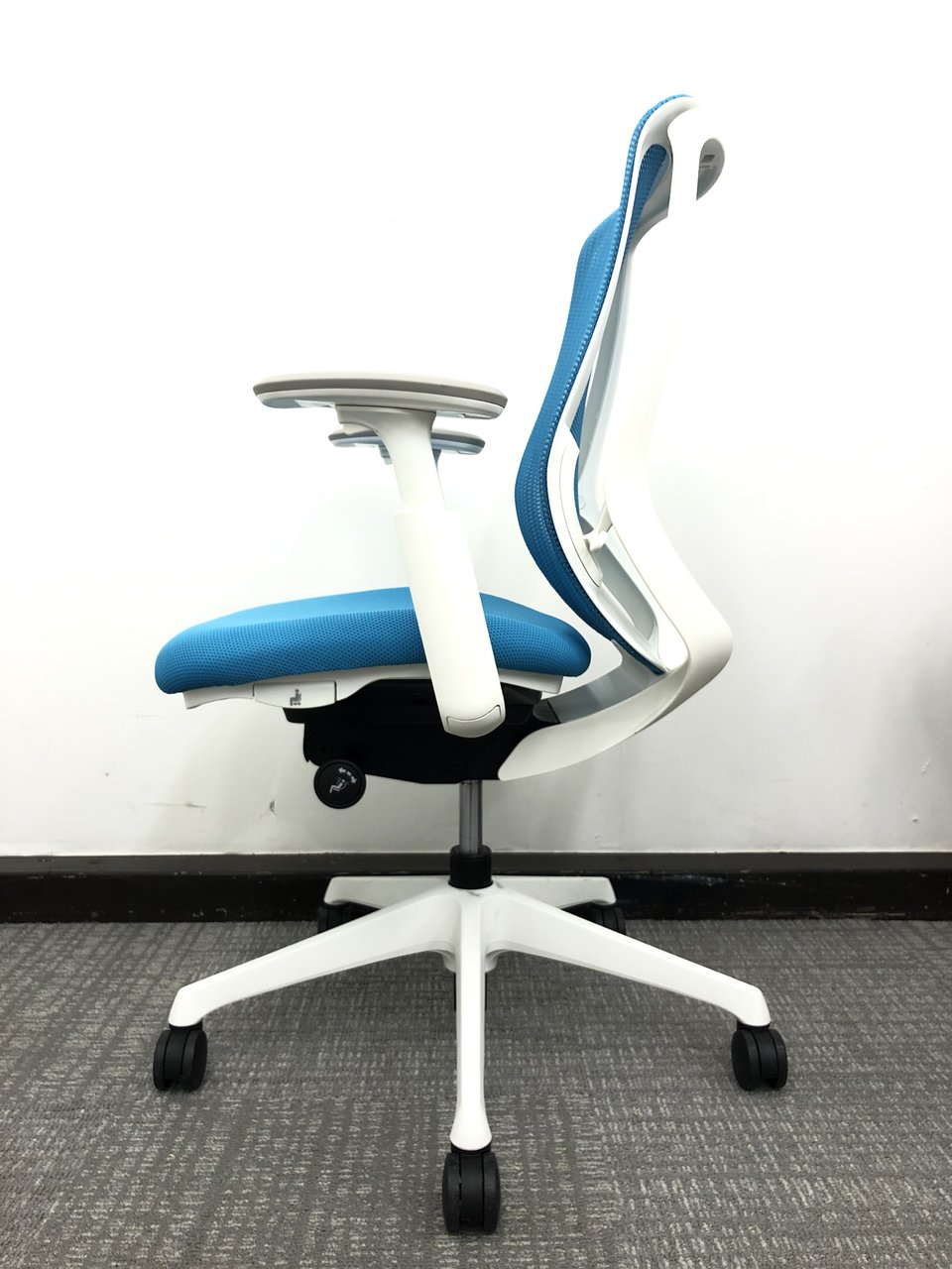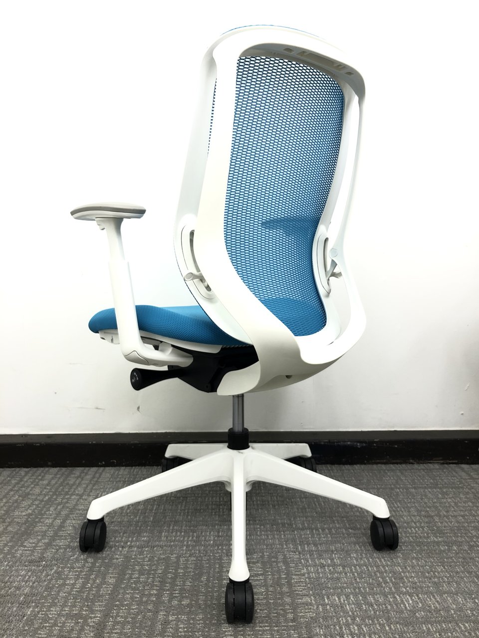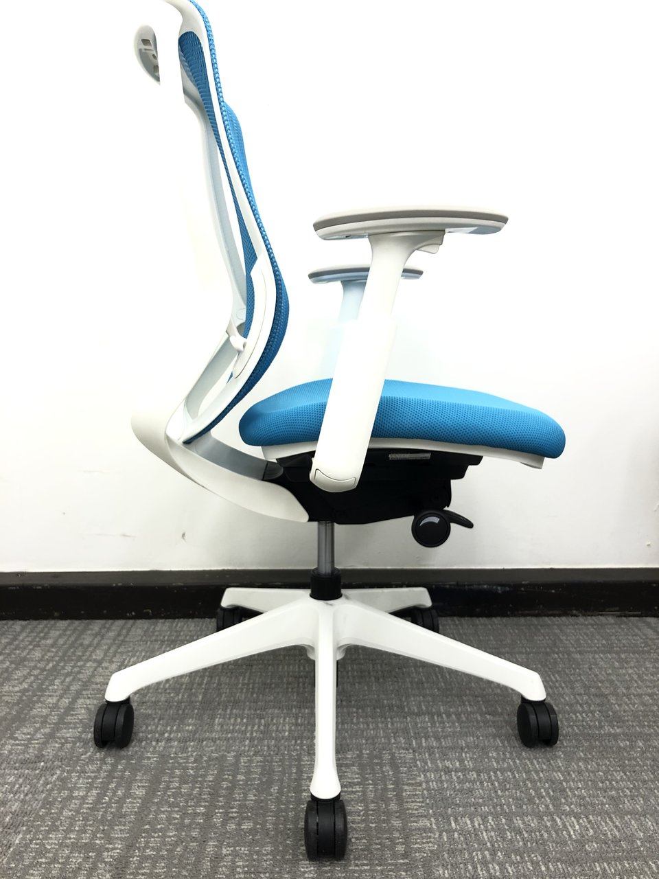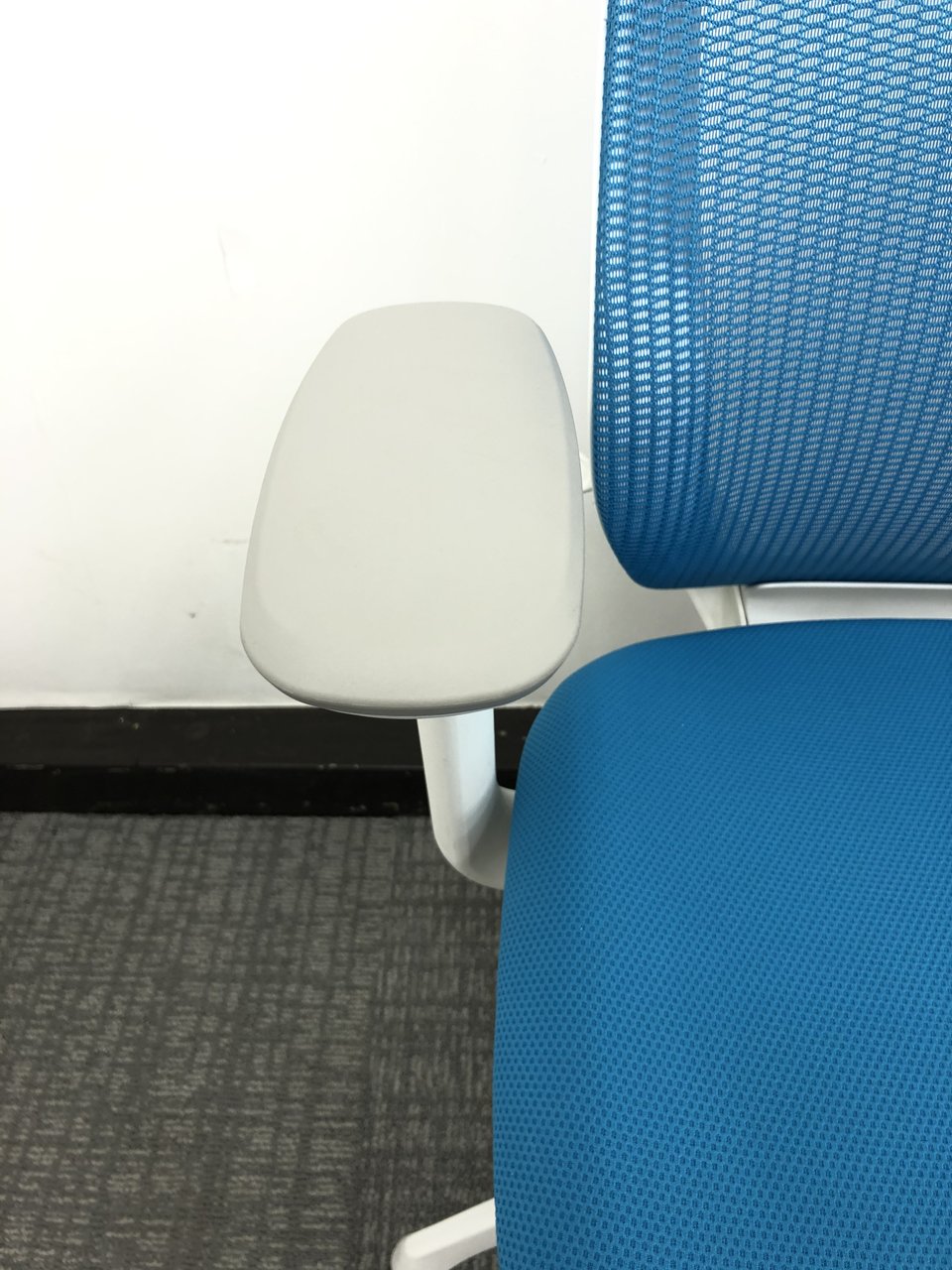 【ターコイズブルー】【ホワイトフレーム】【人気チェア】【23脚入荷】【シルフィー】【可動肘】【前傾チルト】【ハイバック】【2019年製】【使用2年未満】