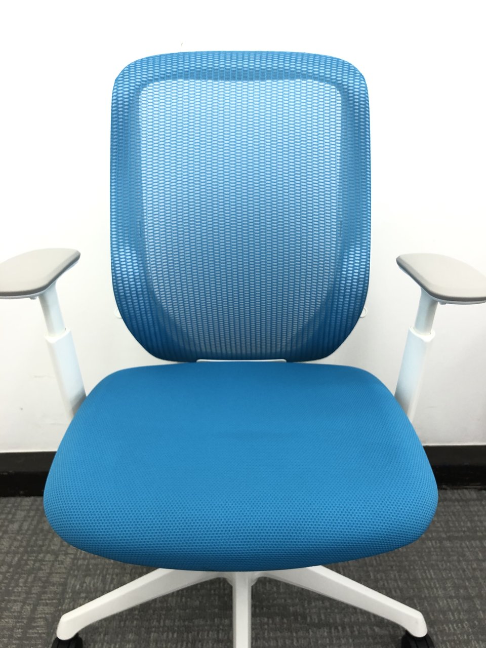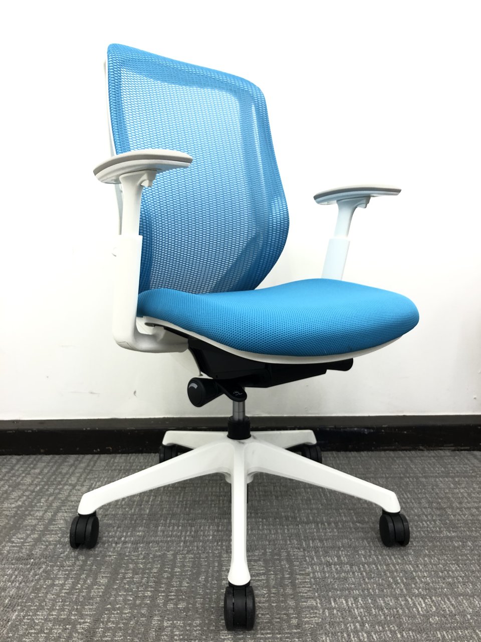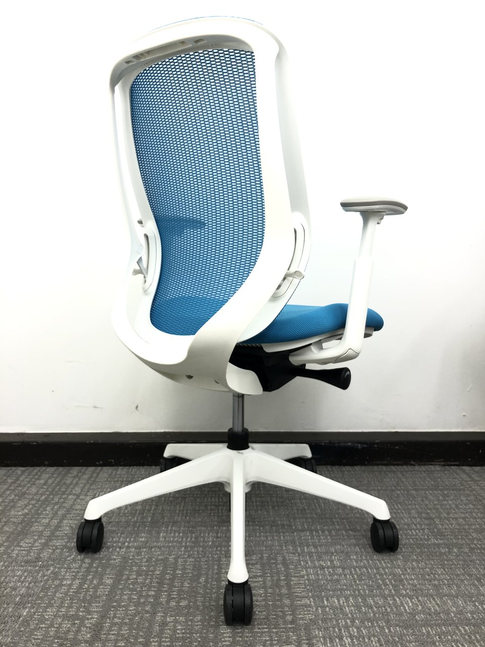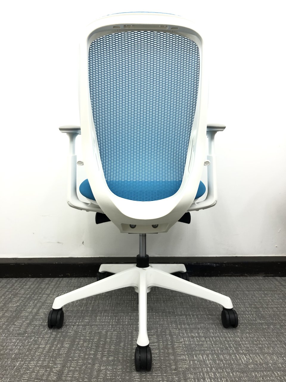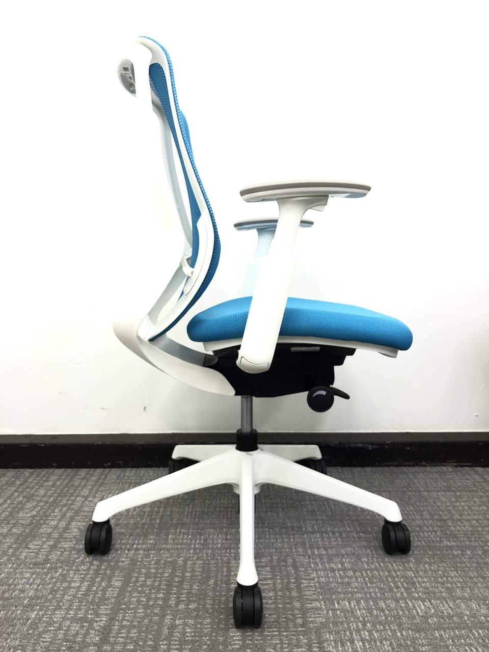【ターコイズブルー】【ホワイトフレーム】【人気チェア】【23脚入荷】【シルフィー】【可動肘】【前傾チルト】【ハイバック】【2019年製】【使用2年未満】