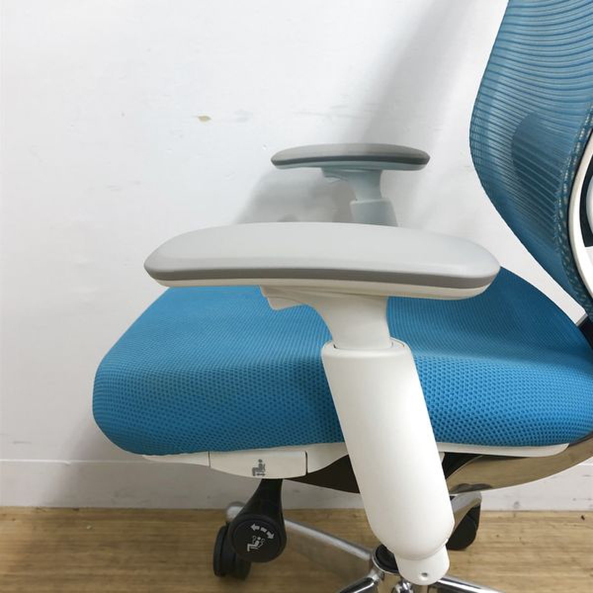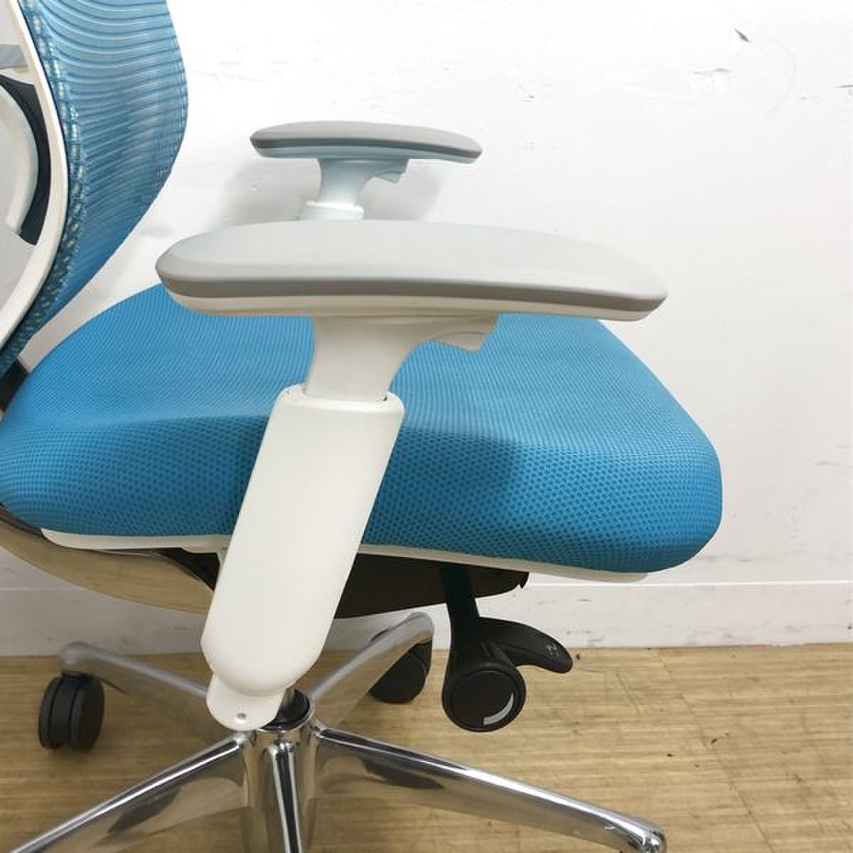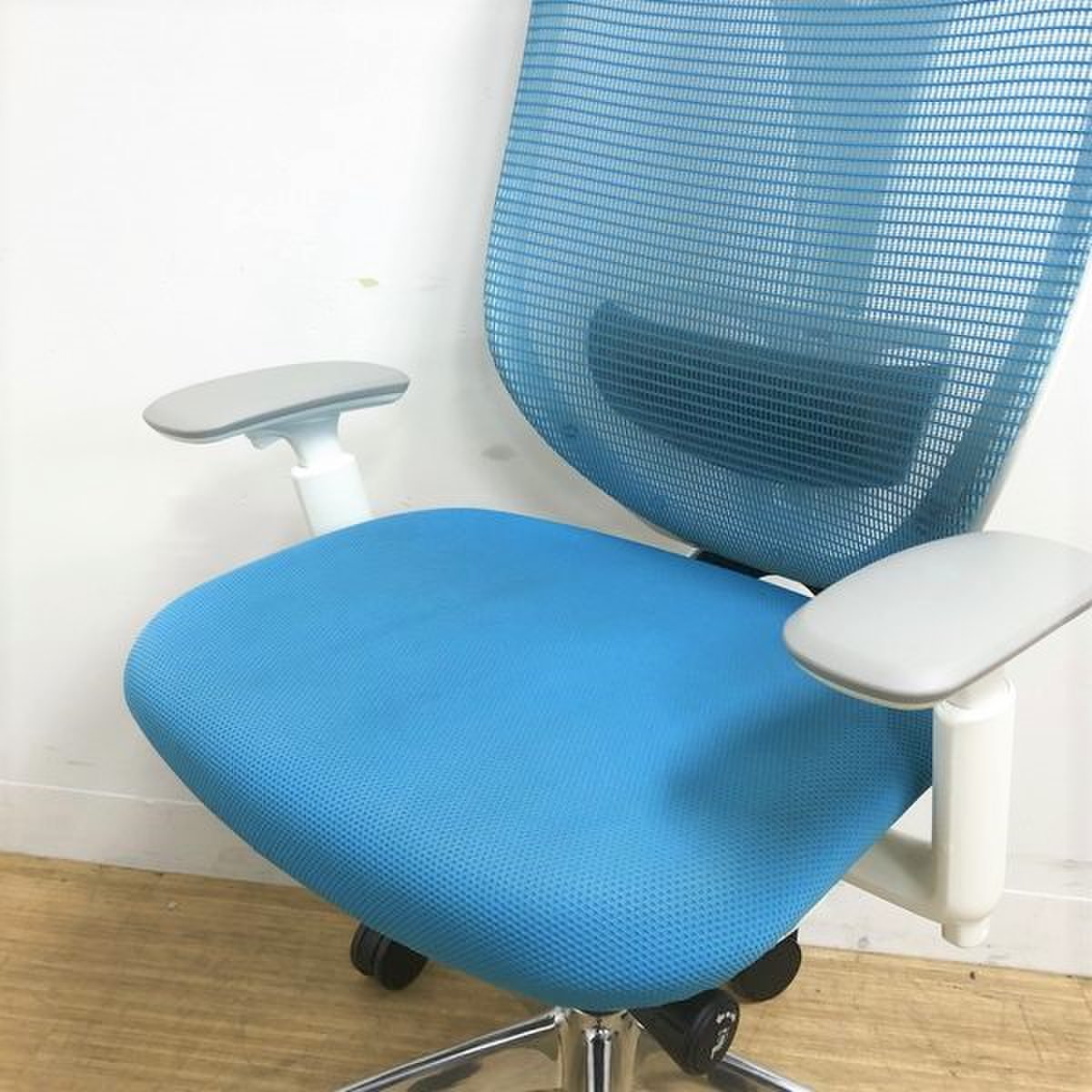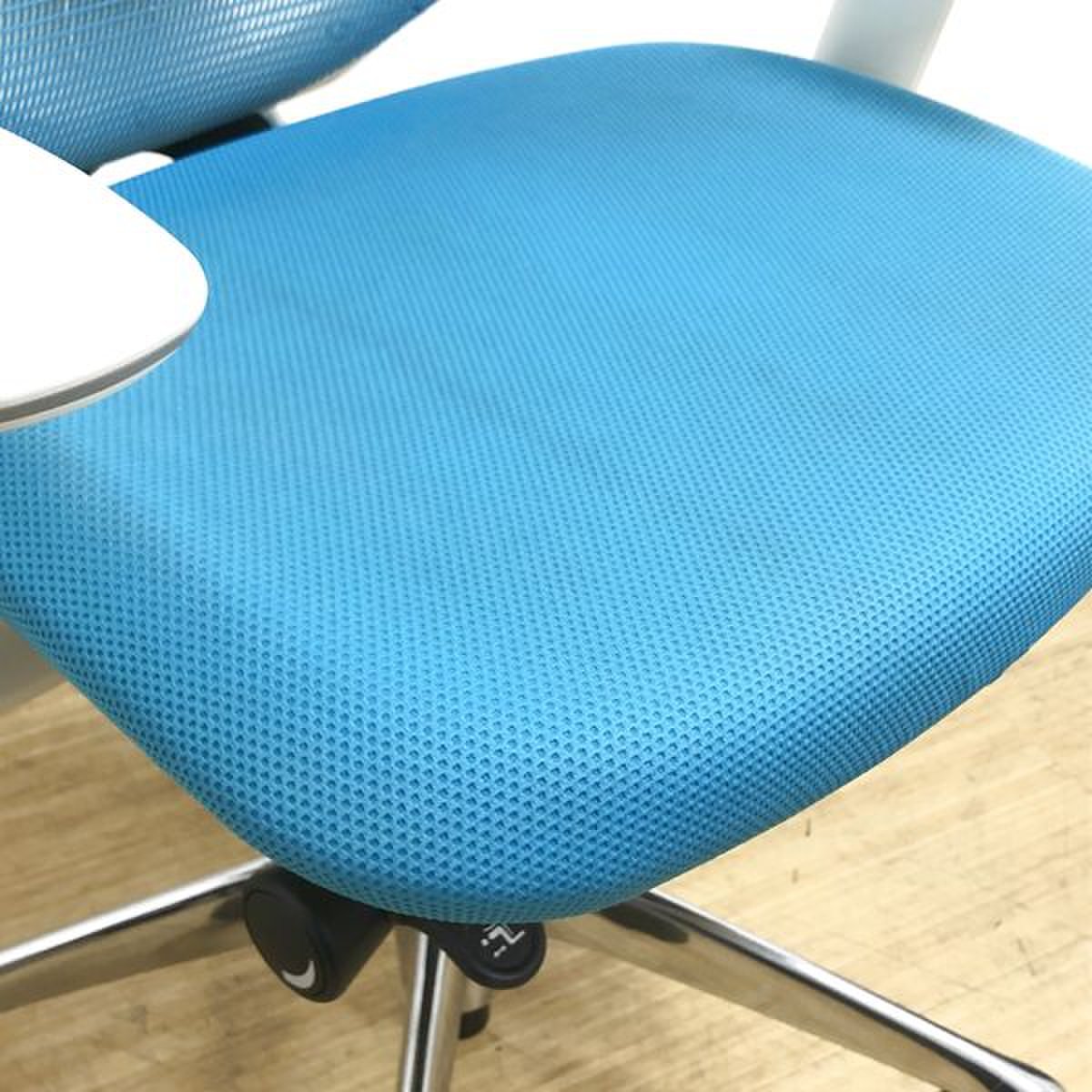 【入荷商品】【4脚入荷】オカムラ製 サブリナチェア ブルー×ホワイトカラー 【可動肘】【背面メッシュ】【通気性抜群】【国内メーカー】