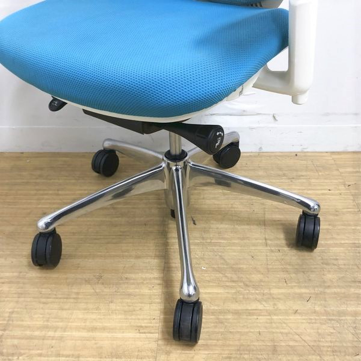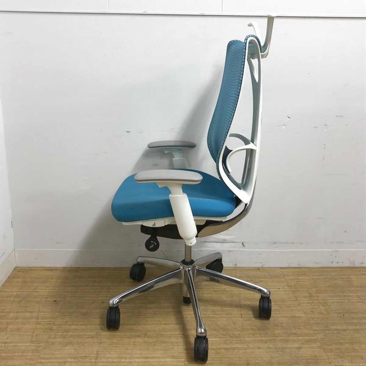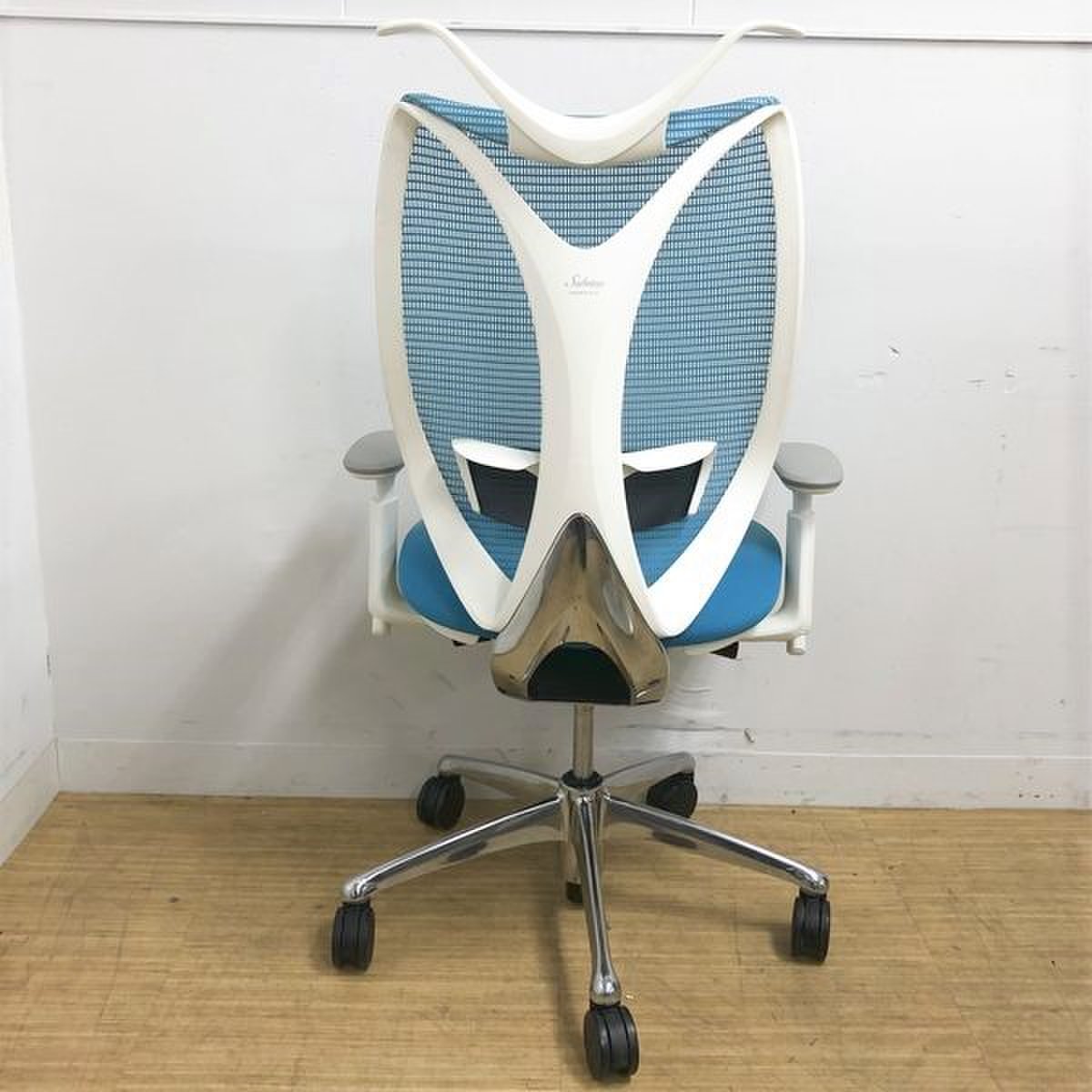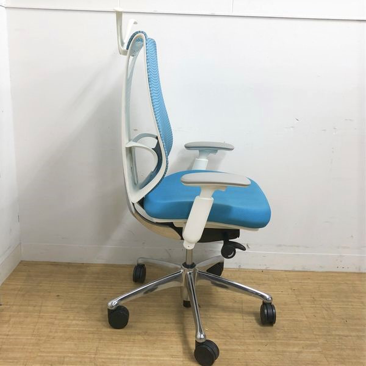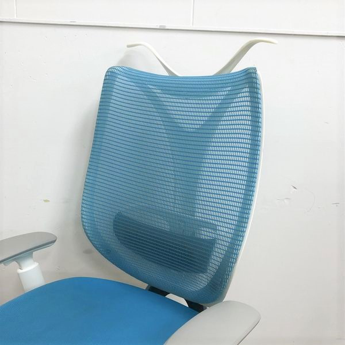 【入荷商品】【4脚入荷】オカムラ製 サブリナチェア ブルー×ホワイトカラー 【可動肘】【背面メッシュ】【通気性抜群】【国内メーカー】