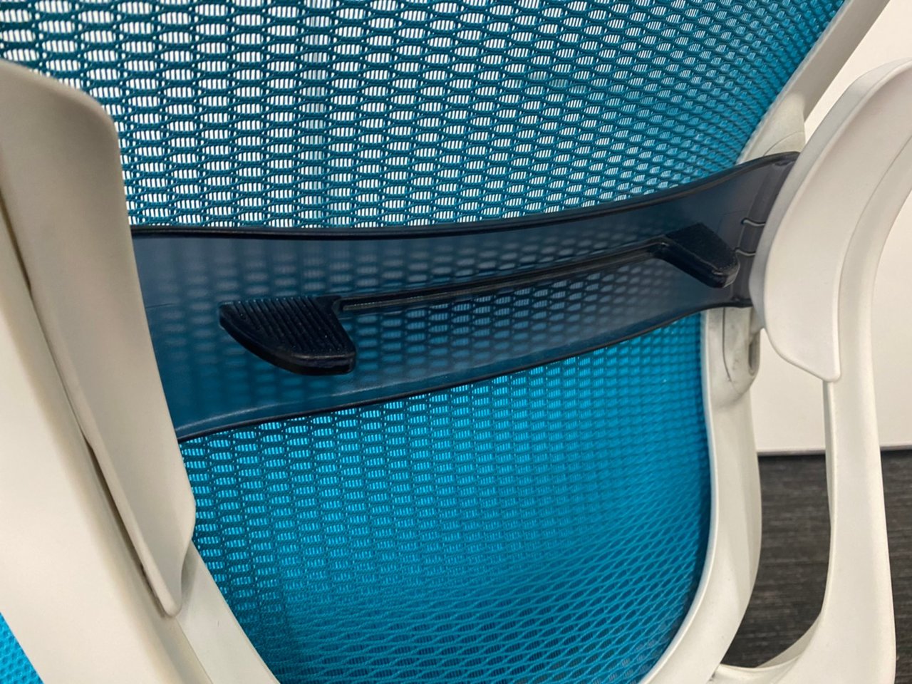 【専門業者によるクリーニング済み!】ターコイズブルーシルフィー(Sylphy)チェア※希少ホワイトフレーム&前傾機能付◆オカムラ製
