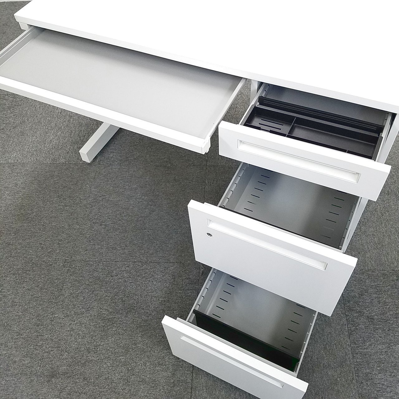 【4台入荷】ホワイトカラーのスタンダードデスク入荷!!充実の収納力