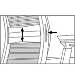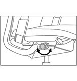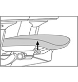 - レバーを引き上げながら座面を前後にスライドさせ、レバーを放すとロックします。背もたれに身体をつけた状態で膝の裏側と座面のエッジの間に5-8センチほどの隙間ができるのが理想的です。