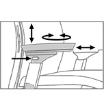 - アームの高さはキャップ下にあるボタンを持ち上げながら上下に調節、アームの位置はアームキャップをつかみ、上下、左右、角度にスライドさせて調節できます。身体の肘はなるべく身体に近づけ、手首とまっすぐになるように調節してください。