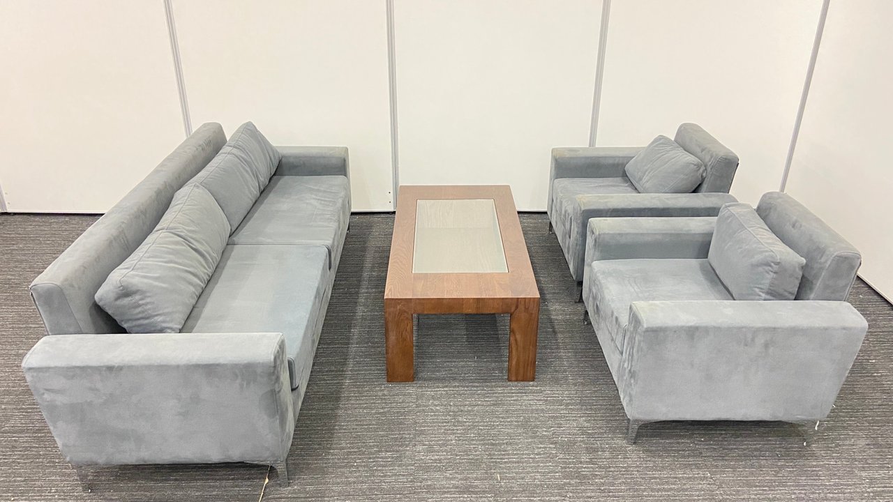 【オシャレな応接セット!】カリモク製テーブル×サンコスモ製ソファの組み合わせ!- 在庫数