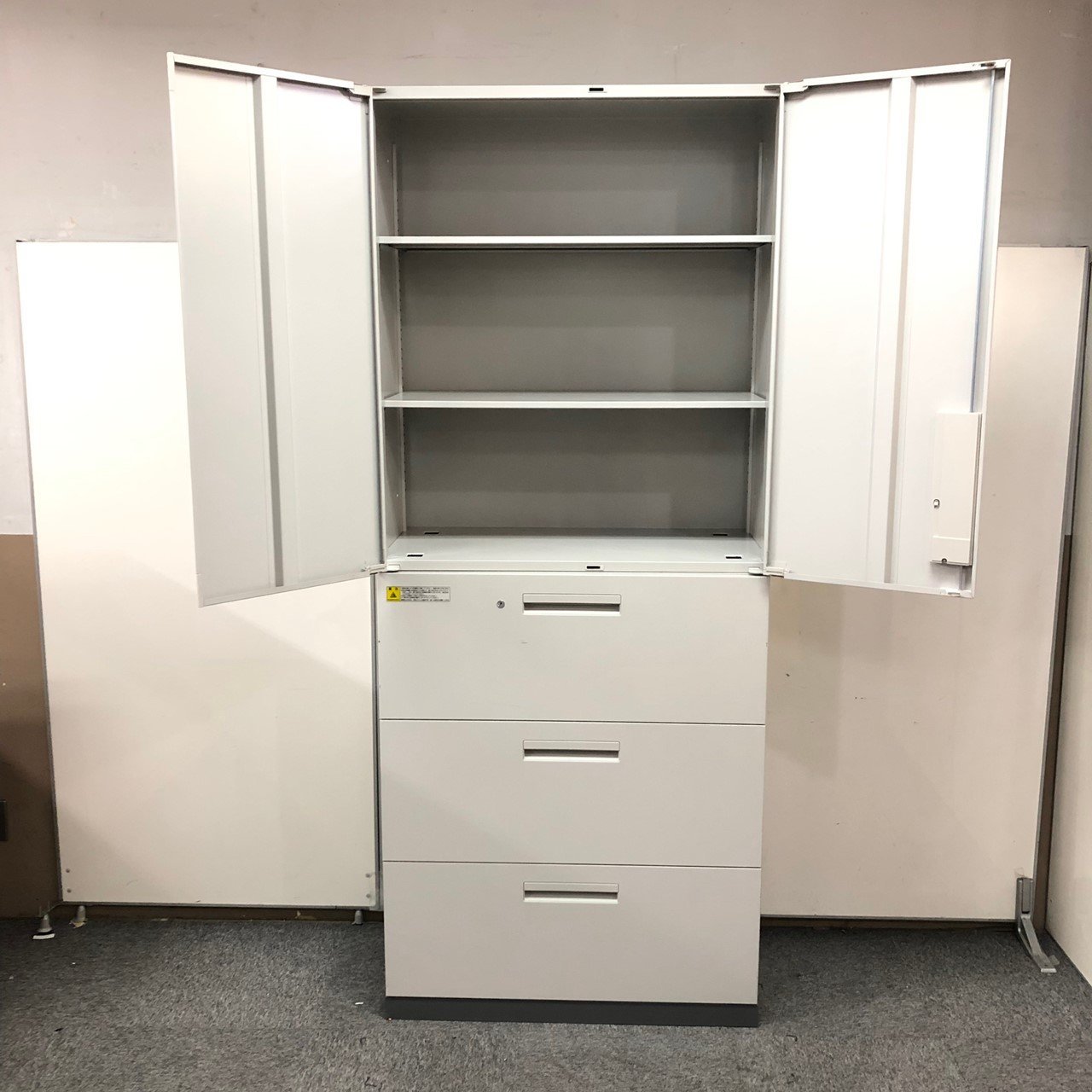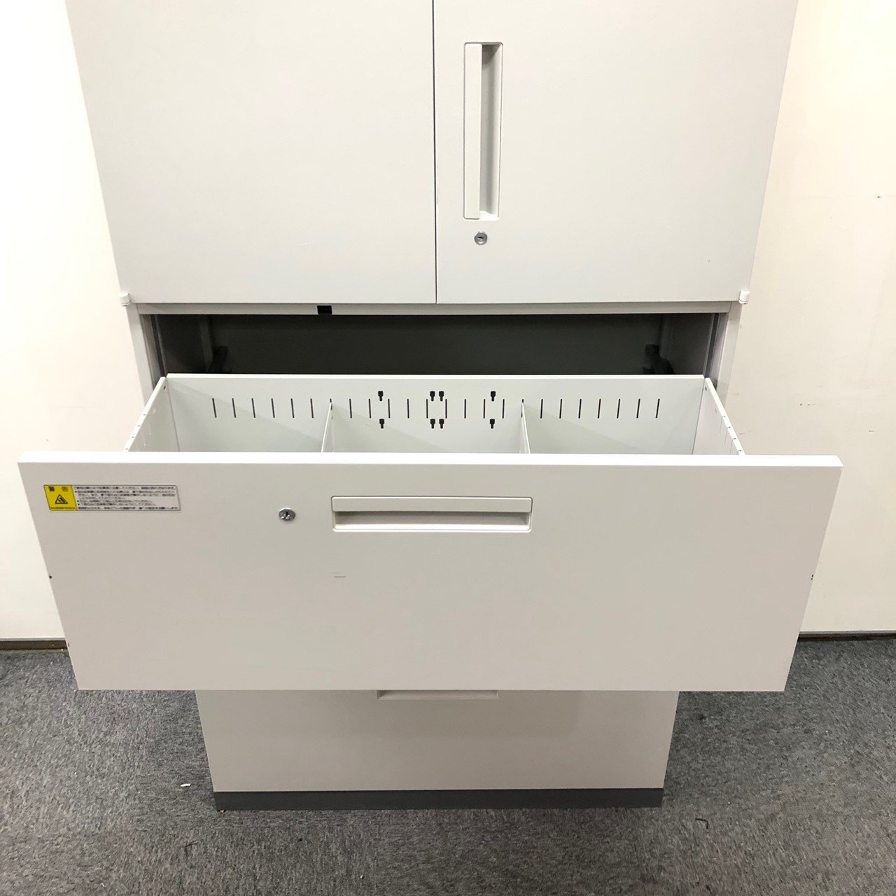 - 一部不具合ありそ引出の開閉不可、施錠不可、棚板無しといったの書庫の本来の効用を果たすための機能以外の一部が使用不可(例、扉、引出の開閉がしづらいなどがある。 )