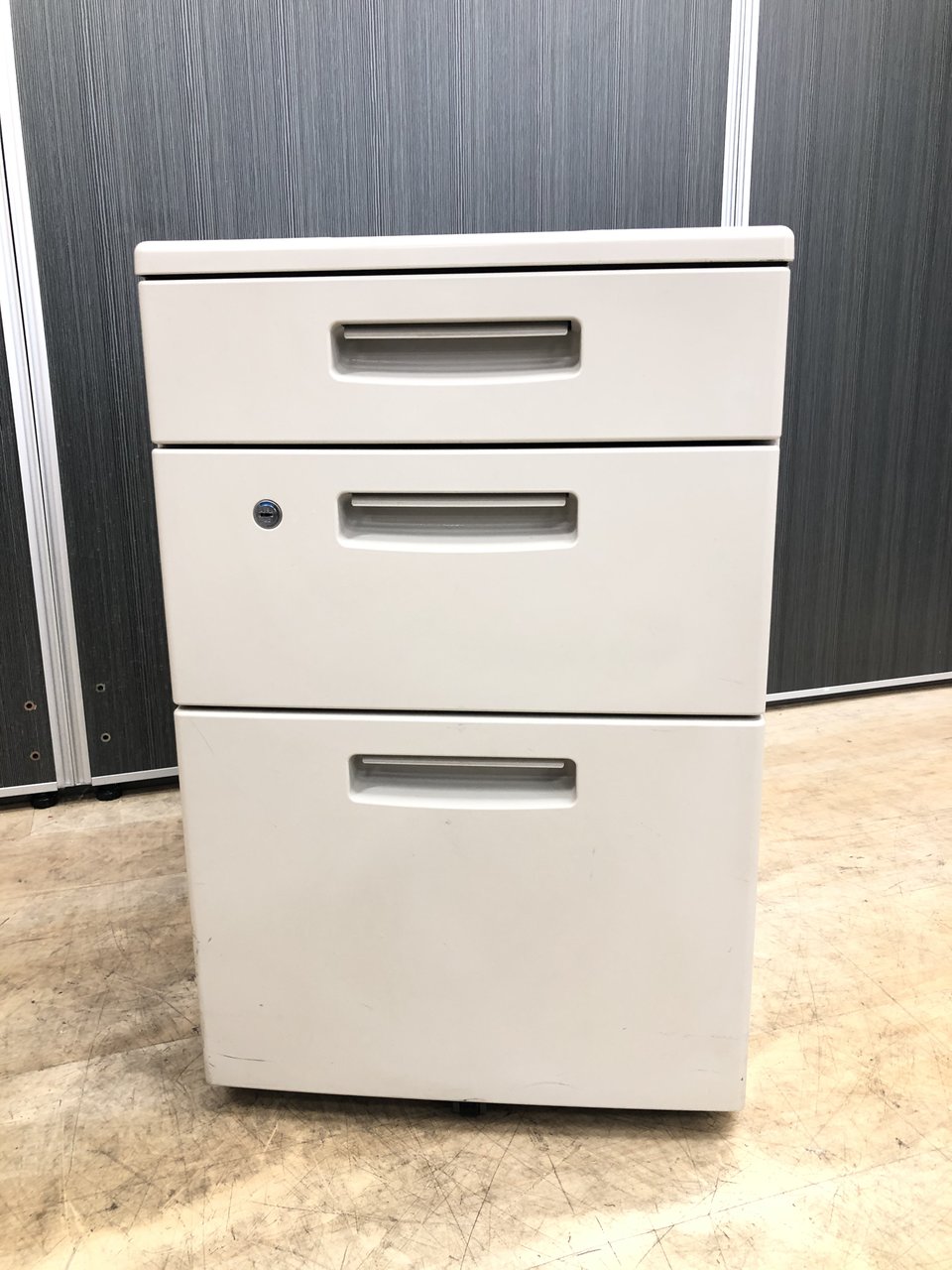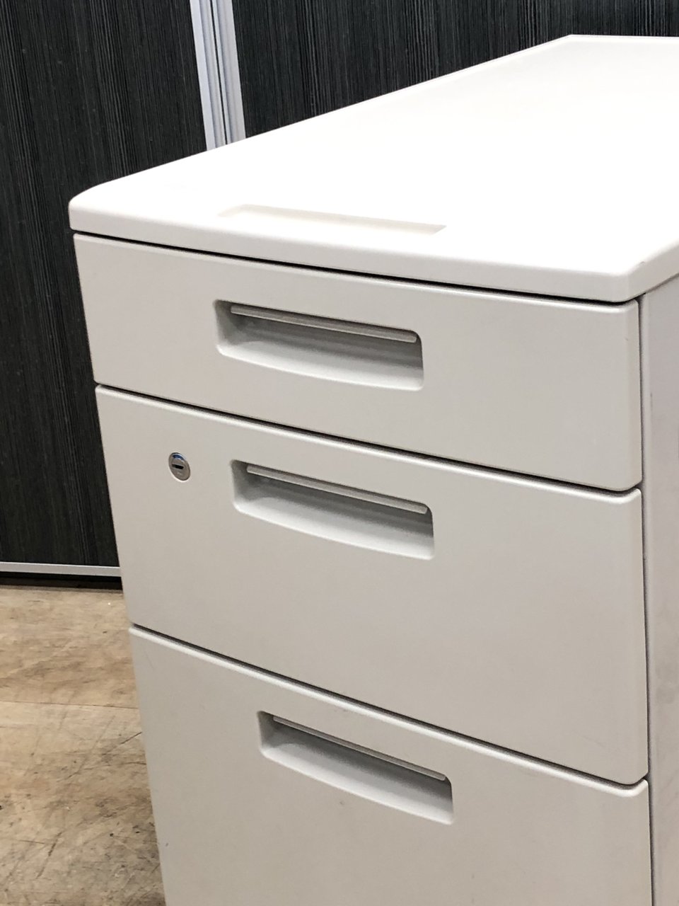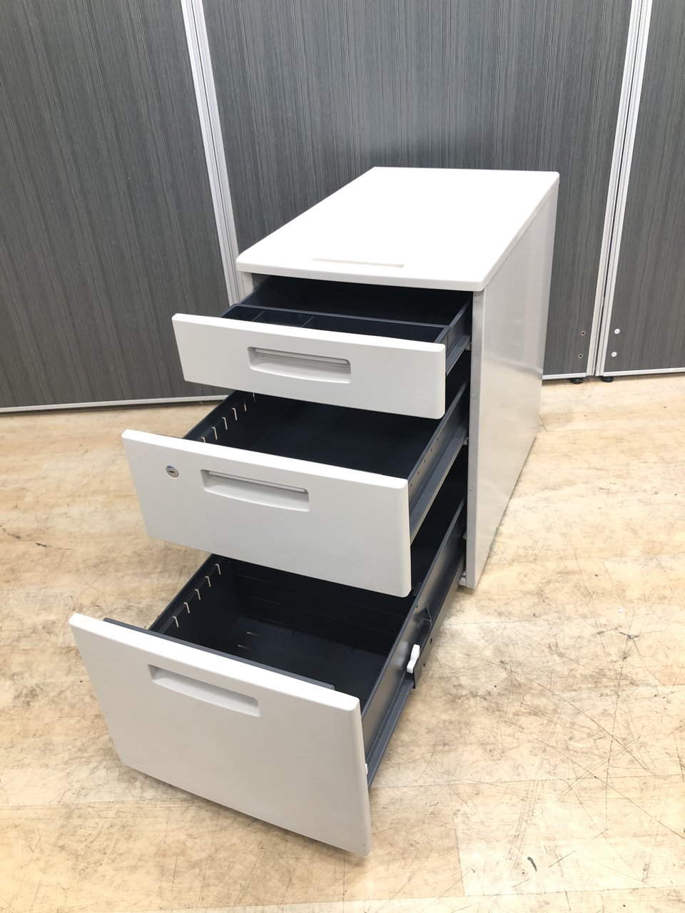 - 一部不具合ありその脇机・ワゴンの本来の効用を果たすための機能以外の一部が使用不可な状態。(例、引出が開閉しづらい、 キャスターロック機能使用不可、ラッチ不良 等がある。)