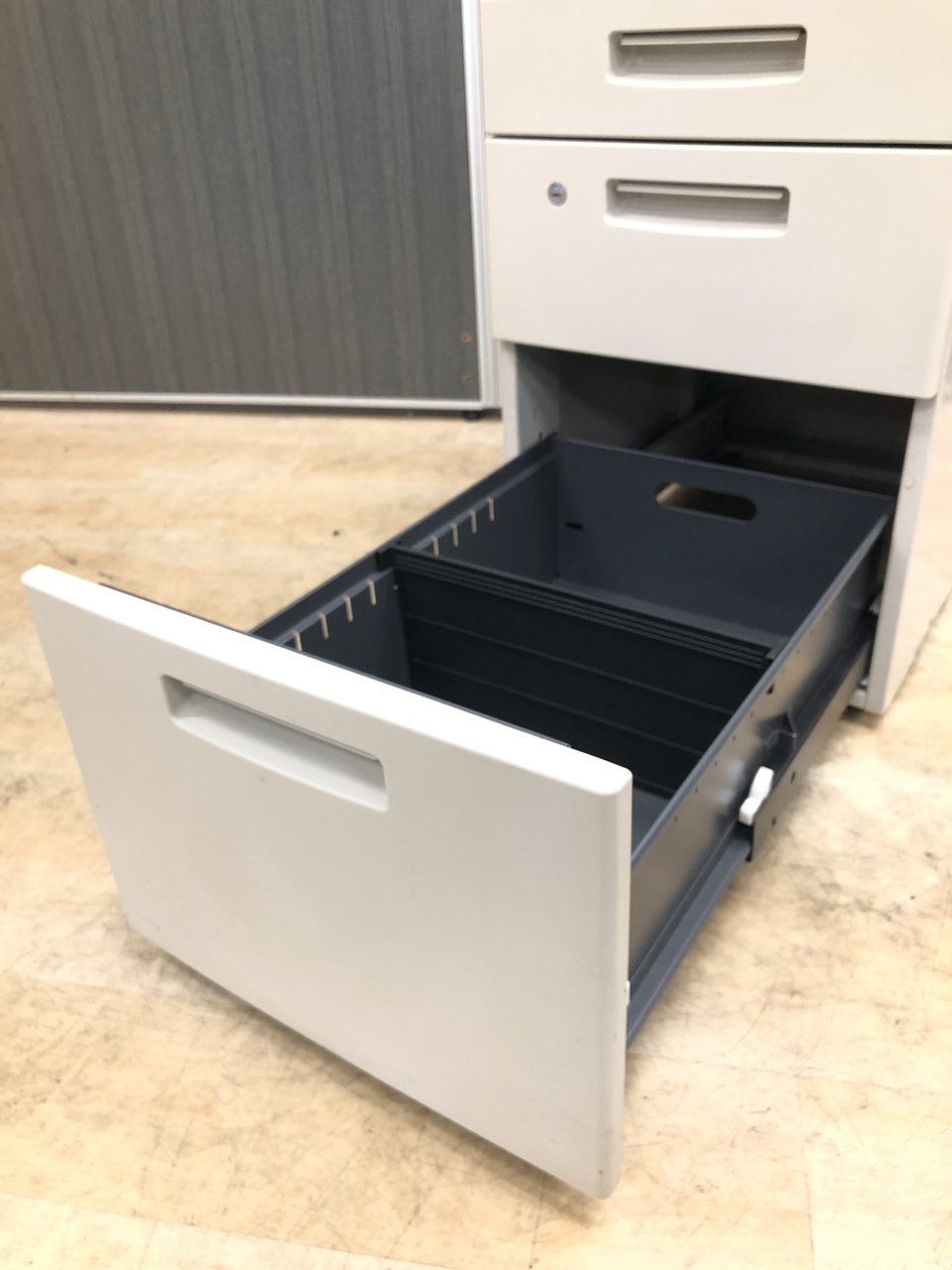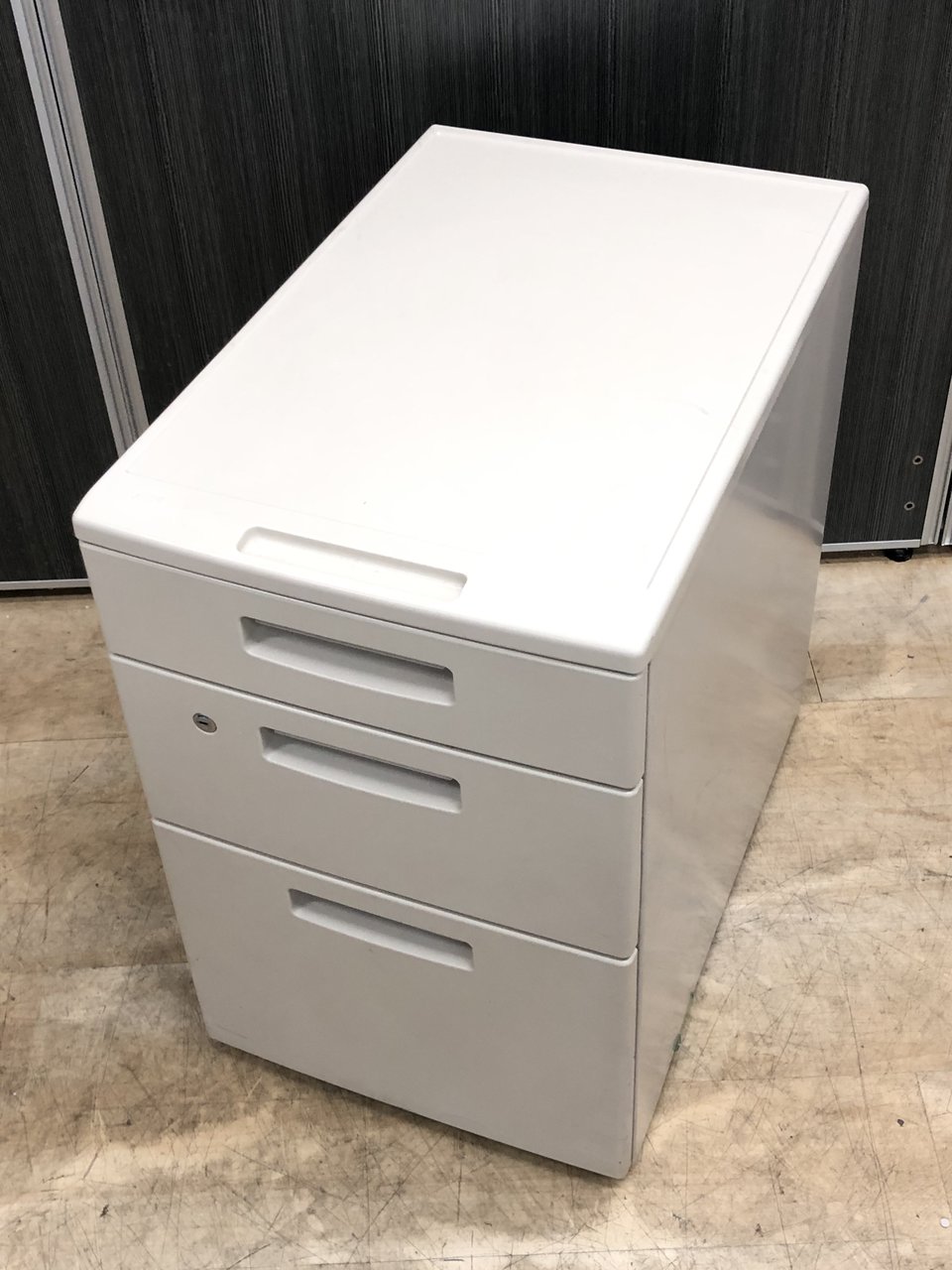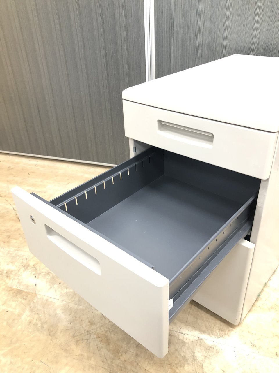 - 一部不具合ありその脇机・ワゴンの本来の効用を果たすための機能以外の一部が使用不可な状態。(例、引出が開閉しづらい、 キャスターロック機能使用不可、ラッチ不良 等がある。)