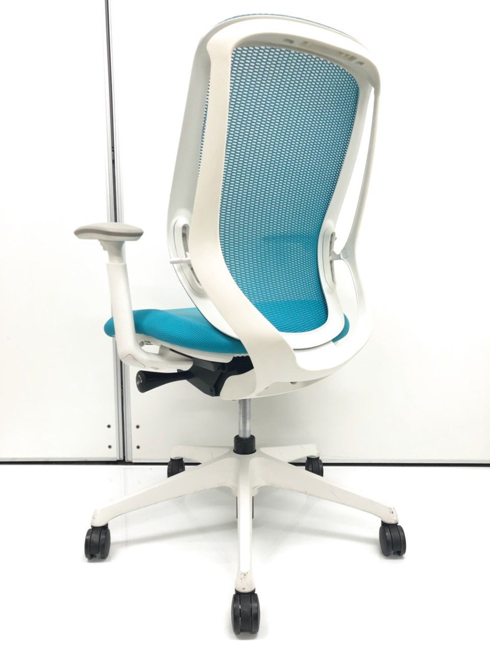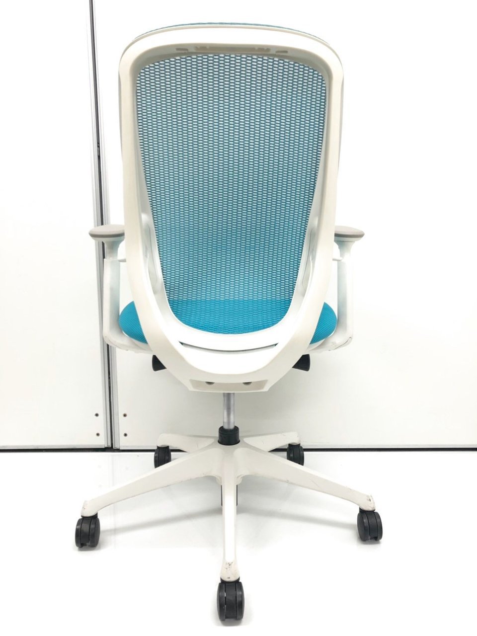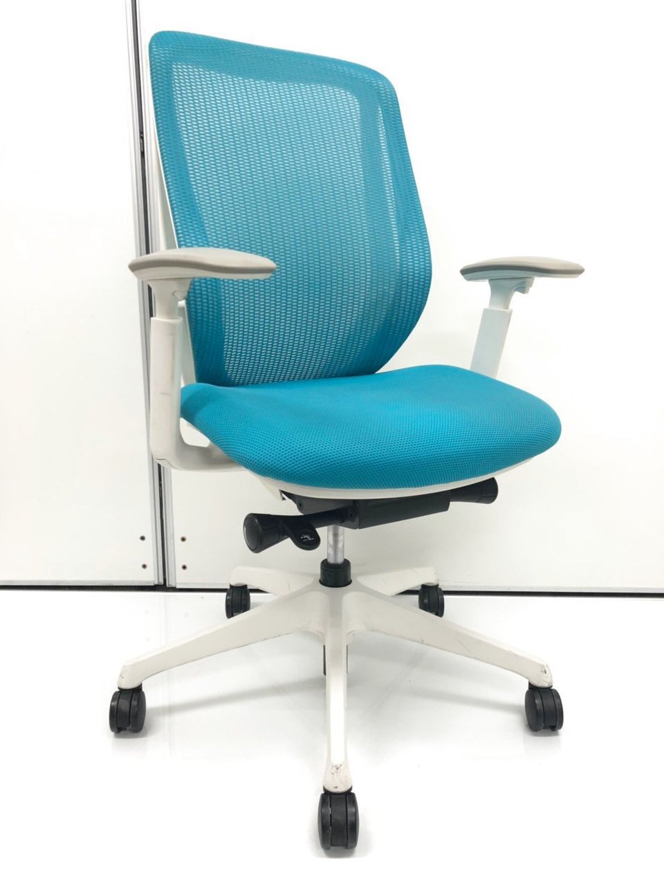 【ターコイズブルー】【ホワイトフレーム】【人気チェア】【23脚入荷】【シルフィー】【可動肘】【前傾チルト】【ハイバック】【2019年製】【使用2年未満】