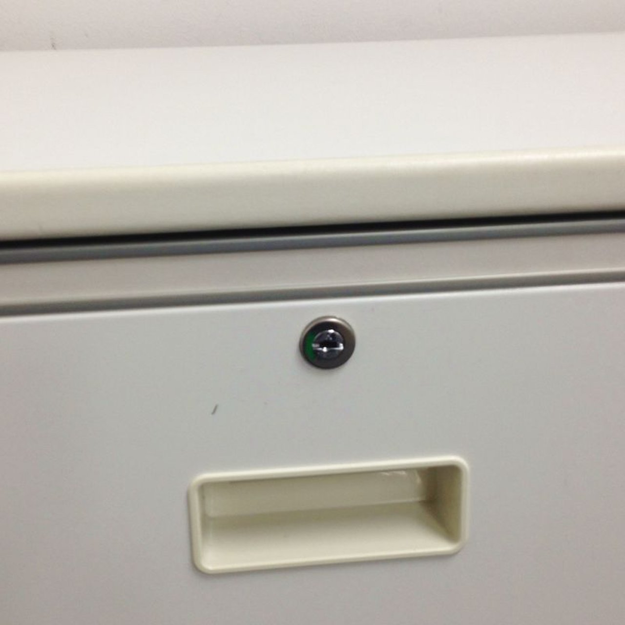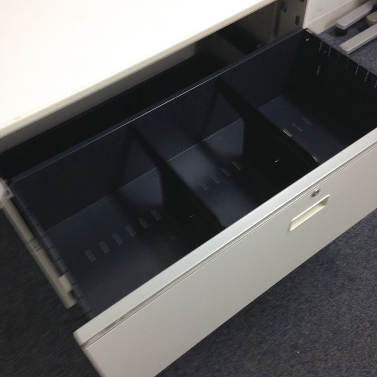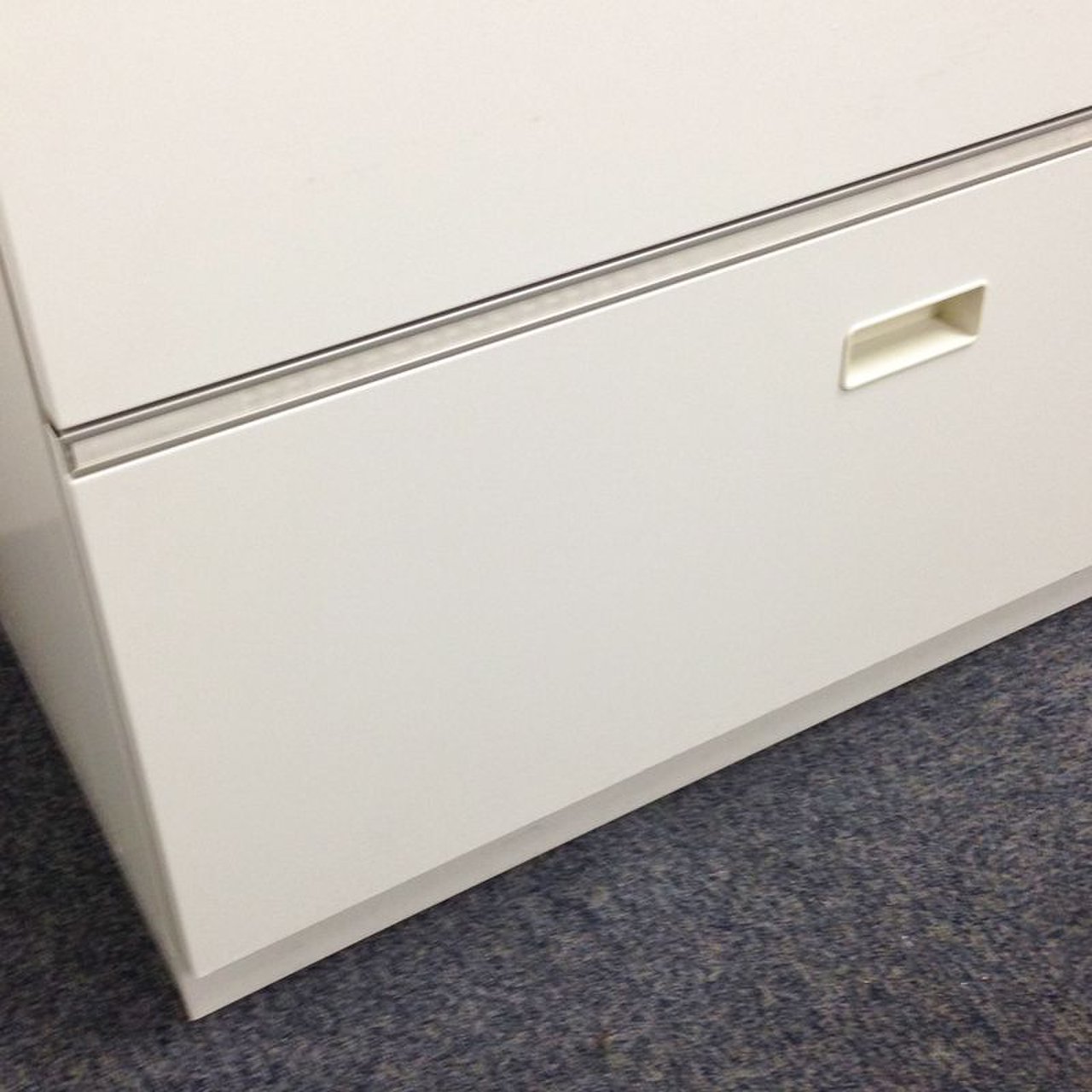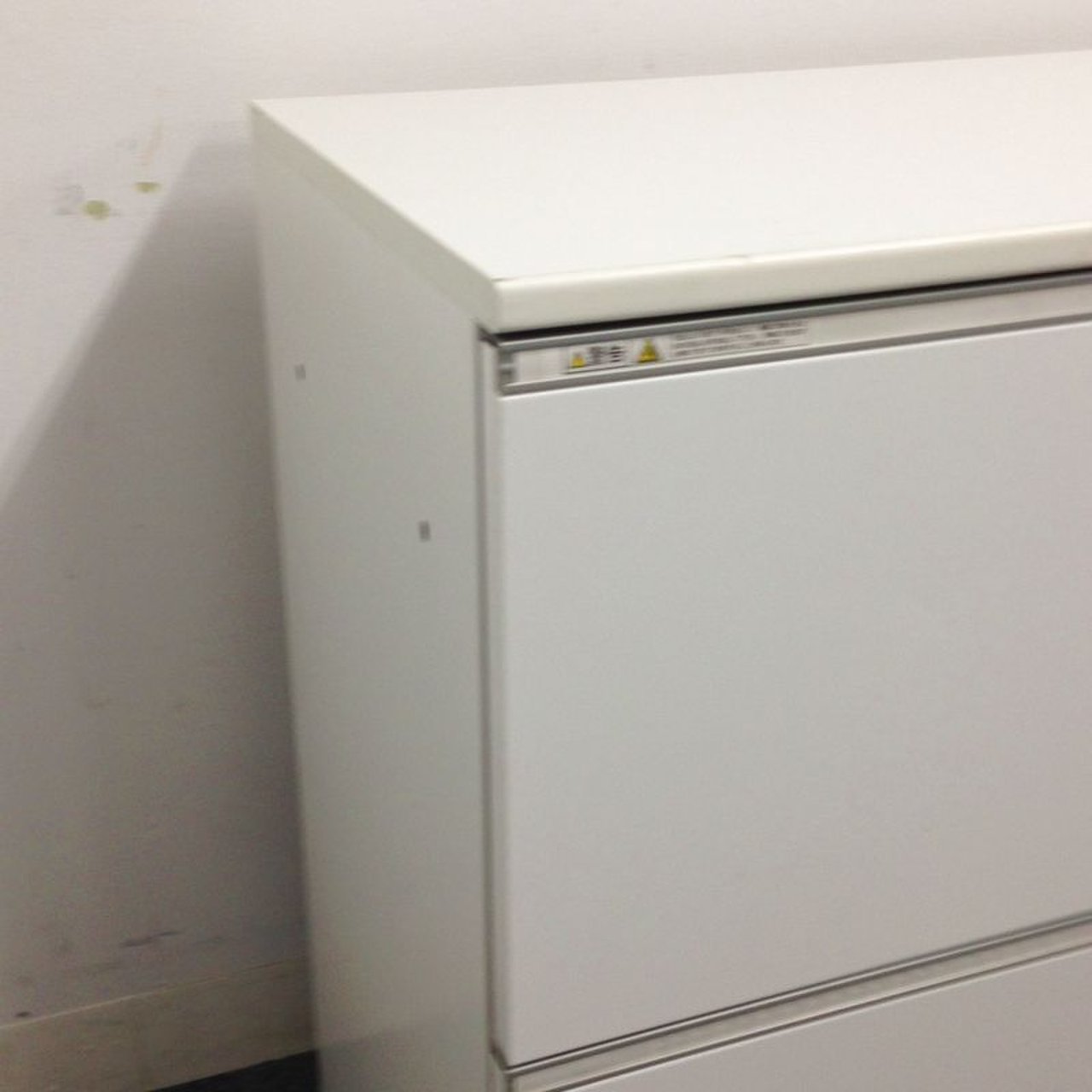 オフィスの収納を陰から支える頑張り屋さん!頑張り屋さんのさがなのか、悲しいことに取っ手が日焼けしておりますが、問題なくご使用いただけます。 ■イトーキ/シンライン/3段収納キャビネット/幅800mm