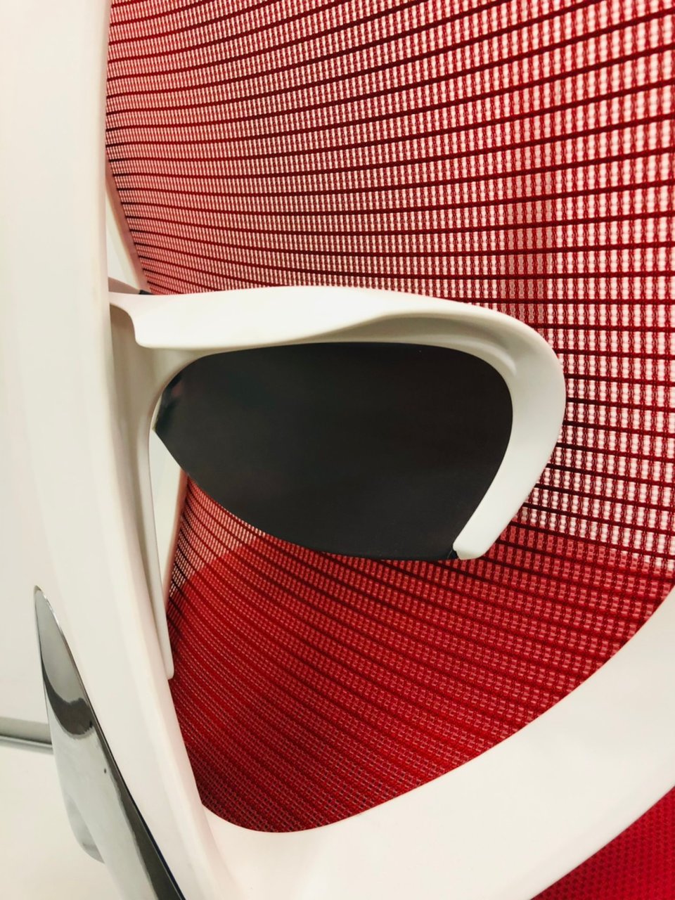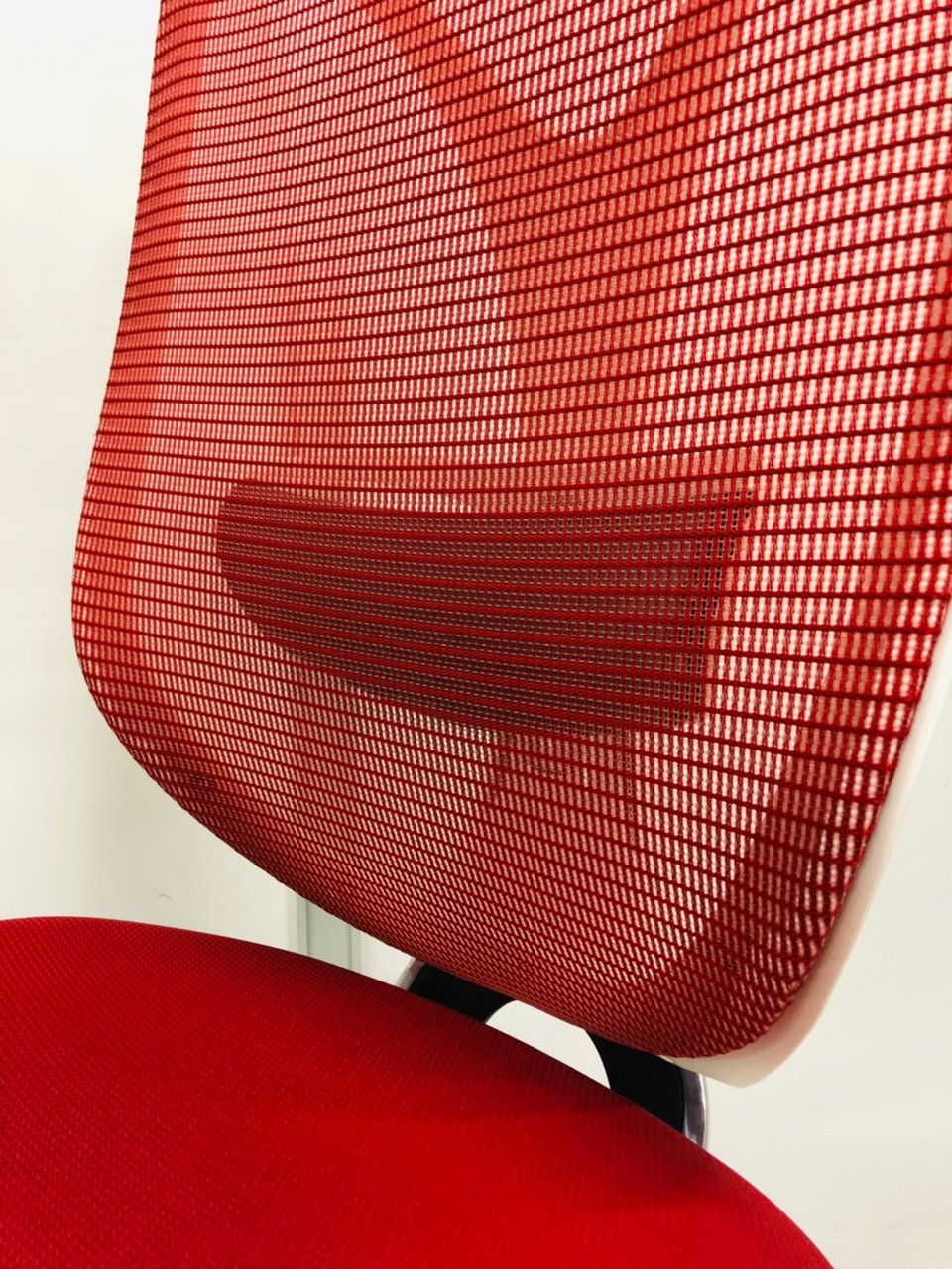【在庫残り3点】【人気商品】オカムラ製 サブリナ レッド×ホワイトカラー 肘無しハイバックチェア【背面メッシュ】【国内メーカー】
