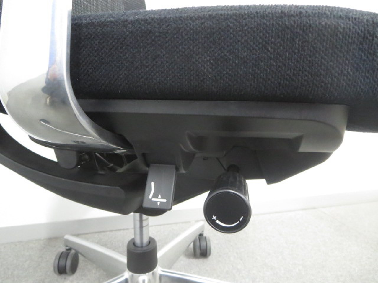 - 基本的な、高さ調節、リクライニング機能に加え、肘掛の高さ、肘あての前後・角度調節、座面奥行き調節など充実した機能を搭載。