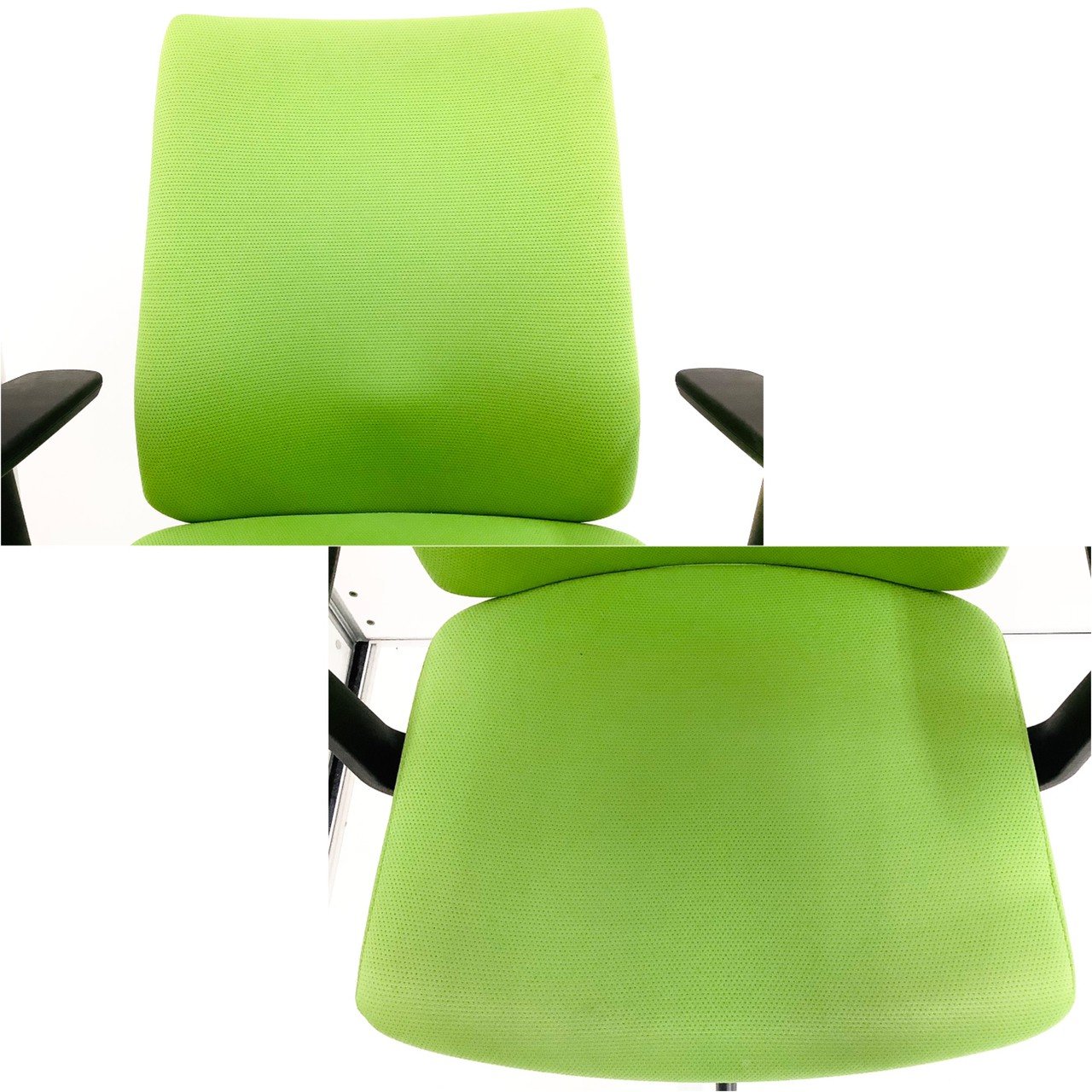 - あり黄ばみ・変色が広い範囲にうっすらある、または濃い黄ばみ・変色が一部ある。(例、座面・背もたれ、脚部等にある。)
