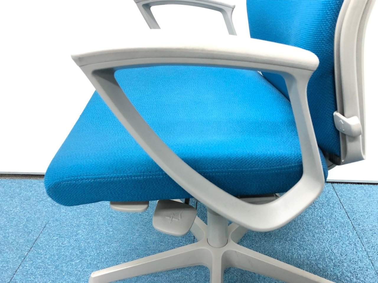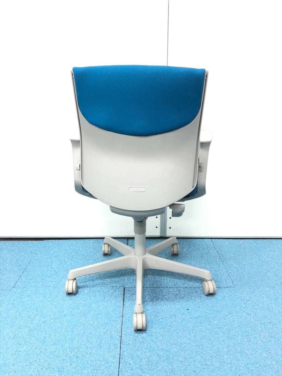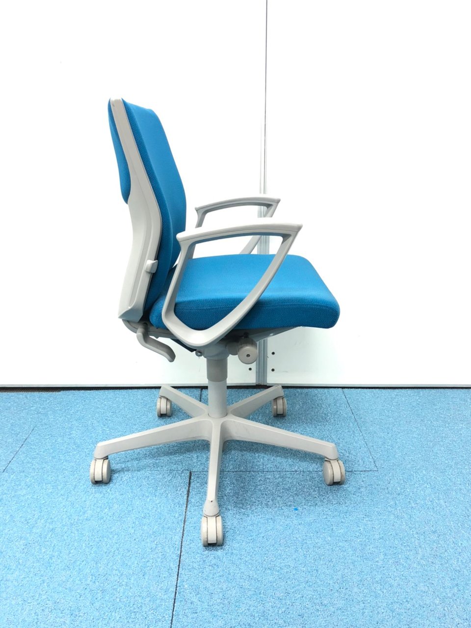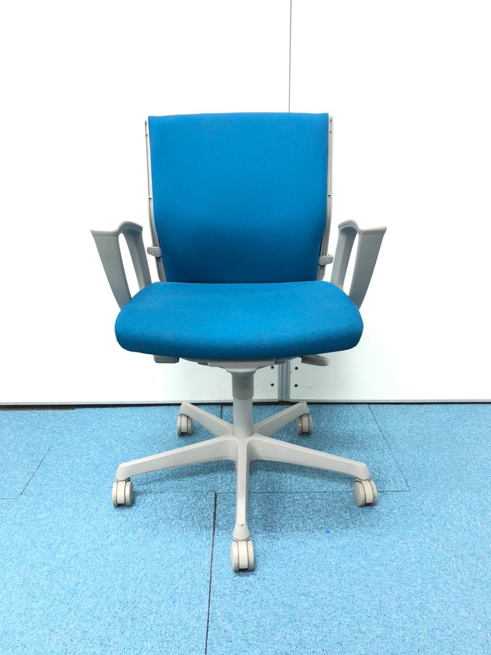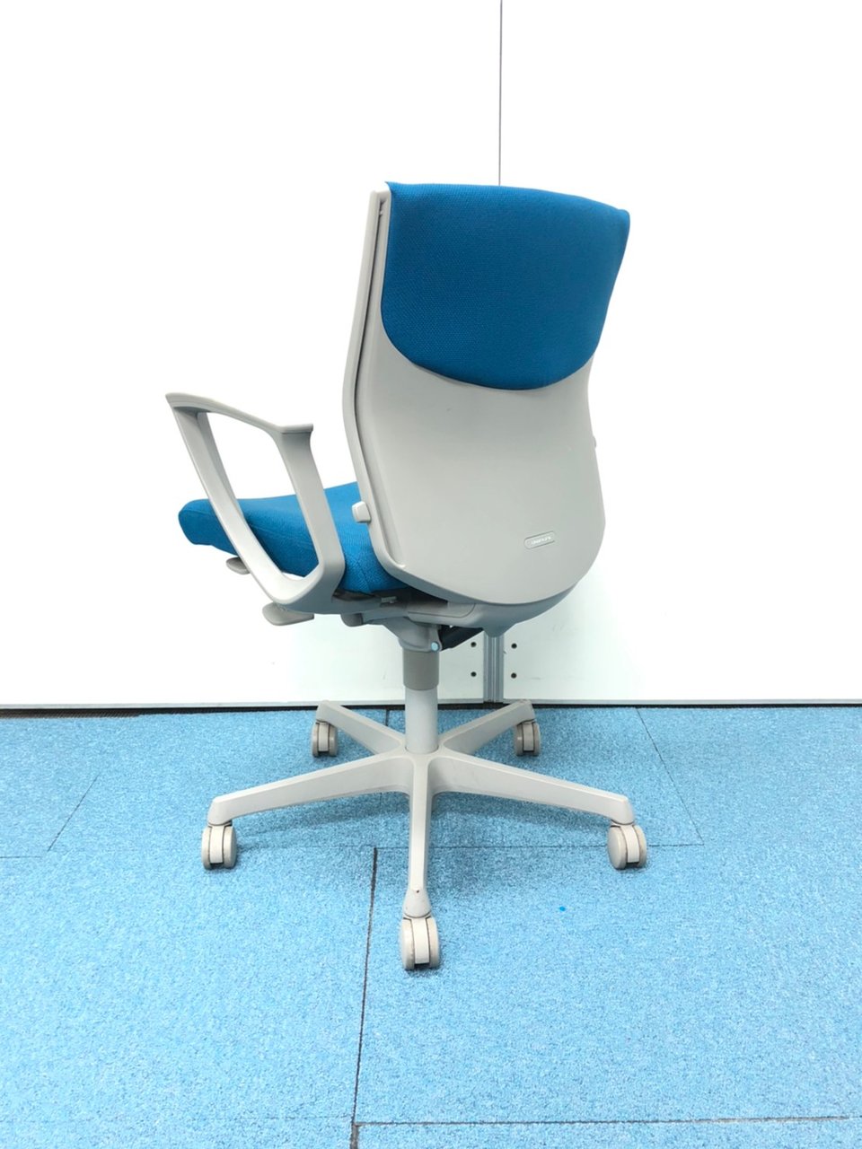 【長時間のデスクワークも快適にサポート!】■オカムラ製 エスクードチェア 肘付 ターコイズブルー