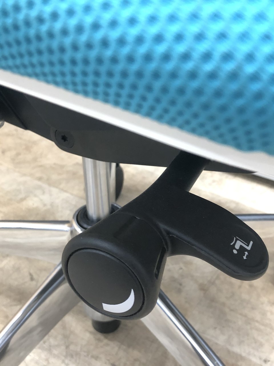サブリナはオカムラ製のオフィスシーティングです★シルフィーの上位モデル ランバーサポート付き ハンガー付 ブルーグリーン