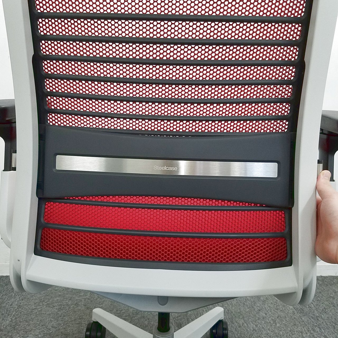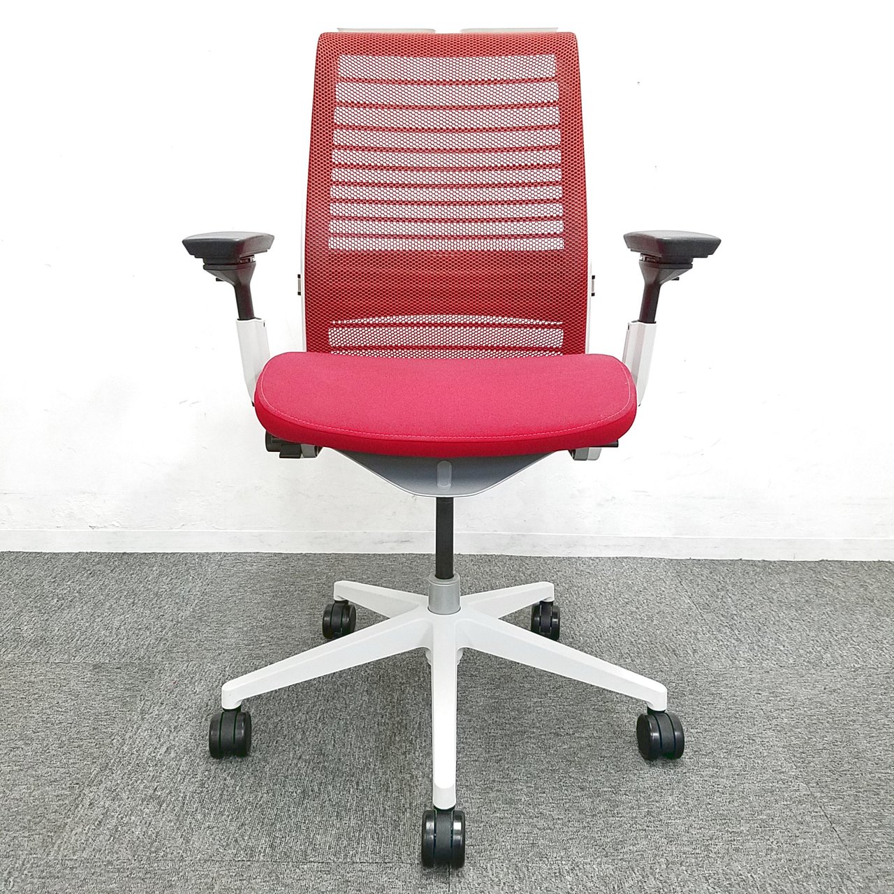 【現行タイプ】スチールケース/シンク※新型/レッド/可動肘/ランバー付き※腰痛防止