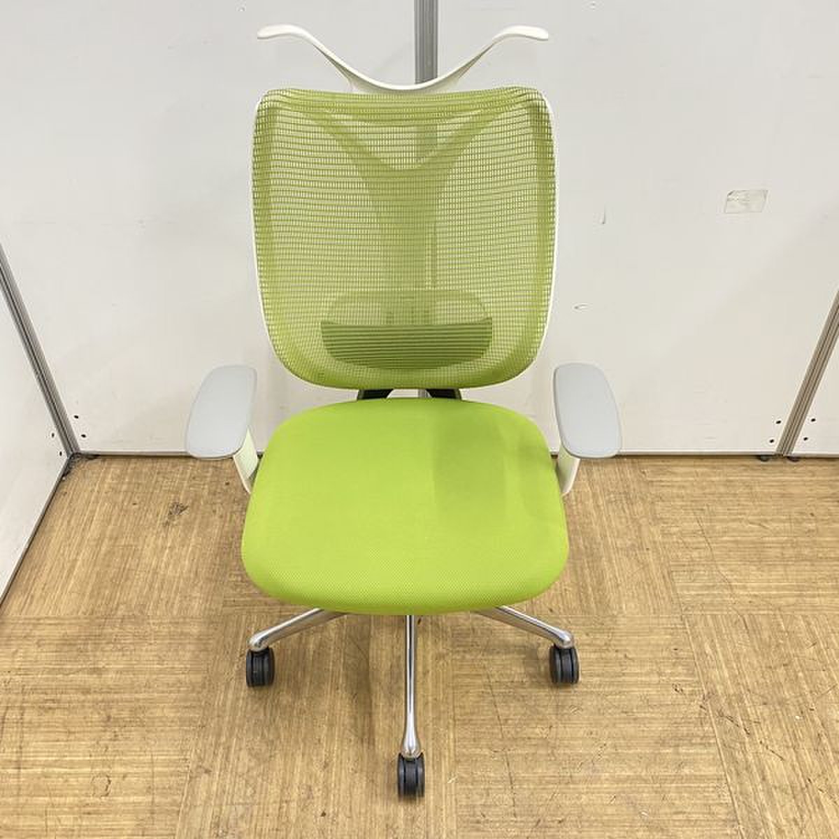 【2脚入荷!!】【ランバーサポート付き!!】オカムラ|サブリナ|ライトグリーンカラー|肘無しハイバックチェア!!【オフィスチェア店】