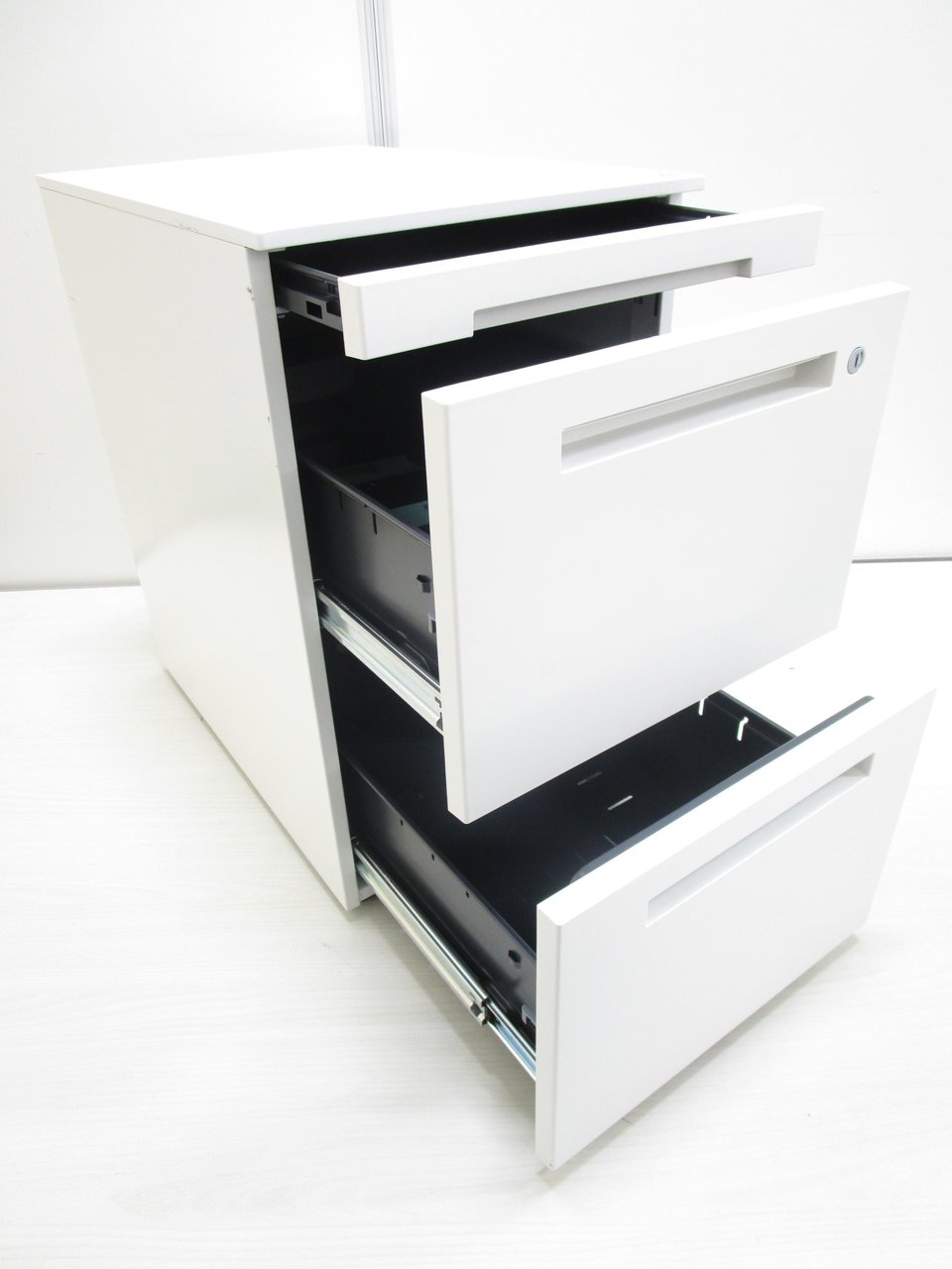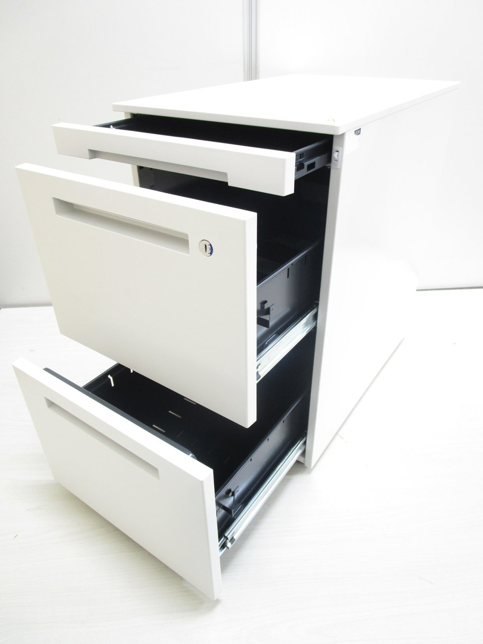 - 一部不具合ありその脇机・ワゴンの本来の効用を果たすための機能以外の一部が使用不可な状態。(例、引出が開閉しづらい、 キャスターロック機能使用不可、ラッチ不良 等がある。)