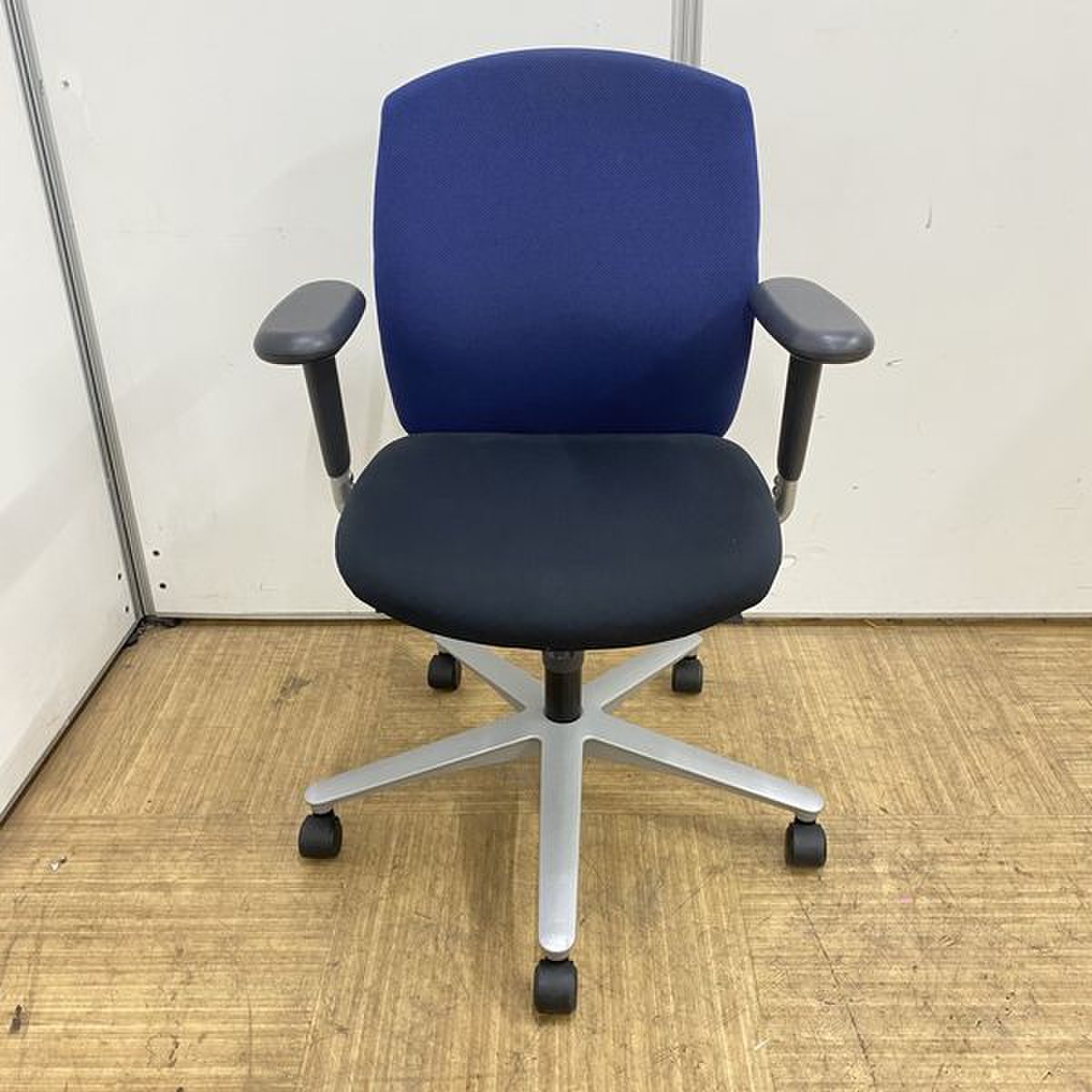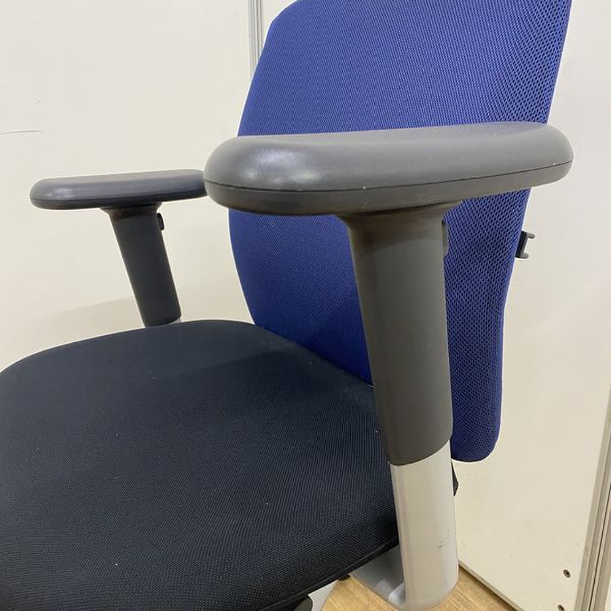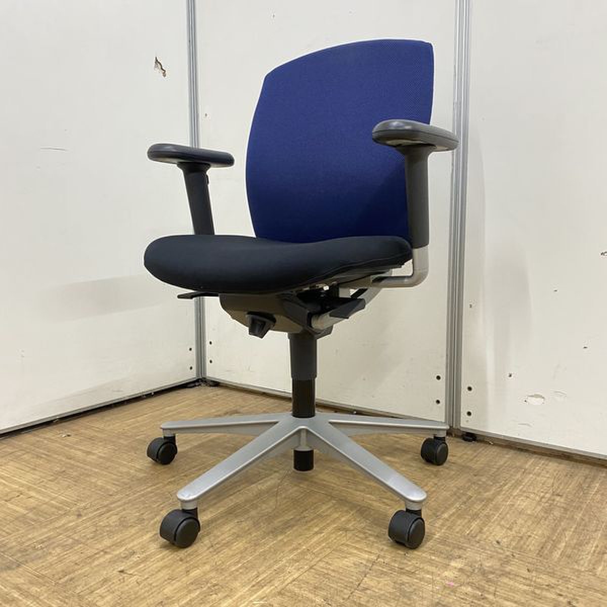 【国内メーカー】内田洋行 キャストチェア ブラック×ブルーカラー 【リクライニング】【可動肘】【京都・滋賀】