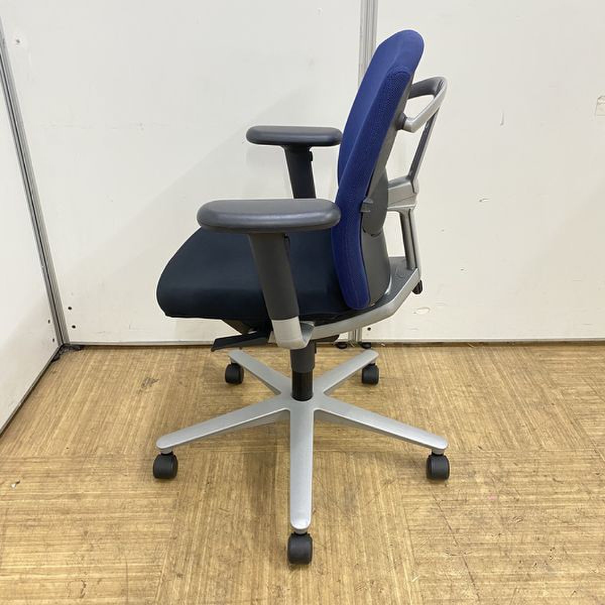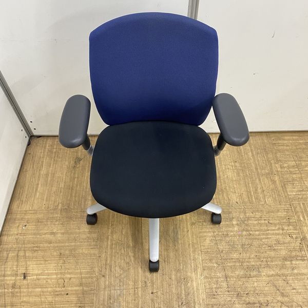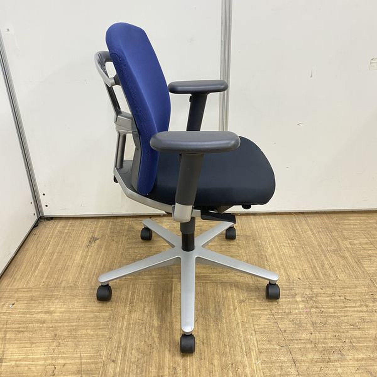 【国内メーカー】内田洋行 キャストチェア ブラック×ブルーカラー 【リクライニング】【可動肘】【京都・滋賀】