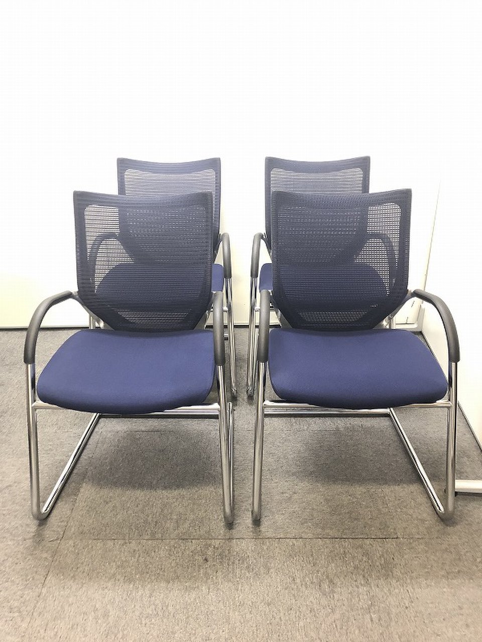【4脚限定!!】オカムラ|バロン|ブルーカラー|肘付きミーティングチェア|メッシュ【関西在庫数ナンバーワン・尼崎店】