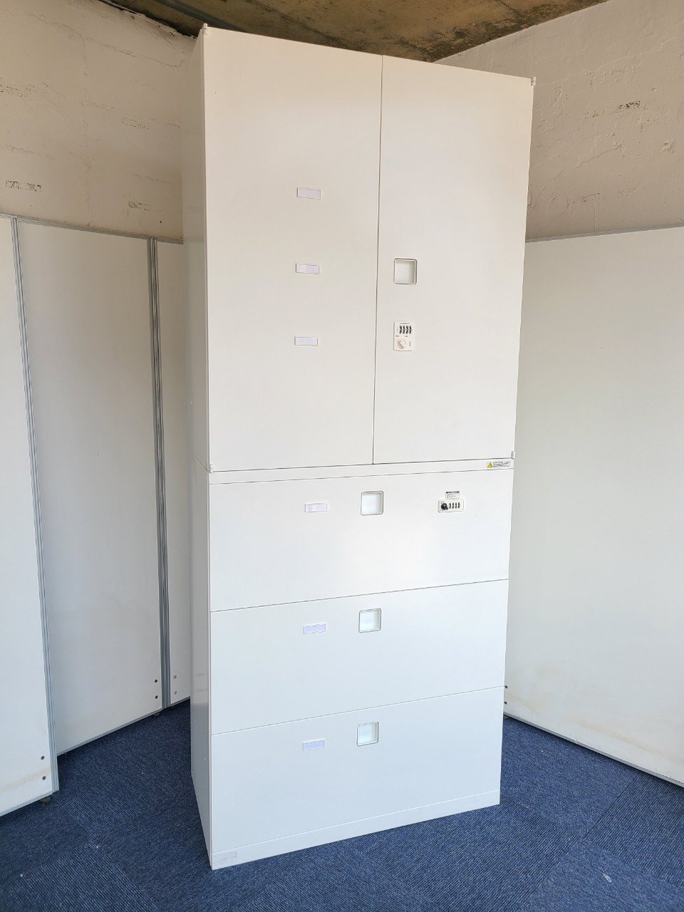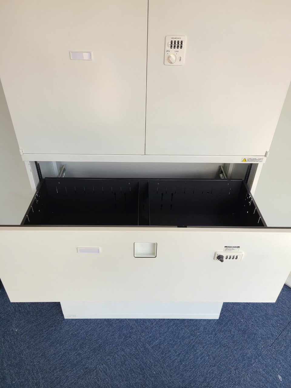 - 一部不具合ありそ引出の開閉不可、施錠不可、棚板無しといったの書庫の本来の効用を果たすための機能以外の一部が使用不可(例、扉、引出の開閉がしづらいなどがある。 )