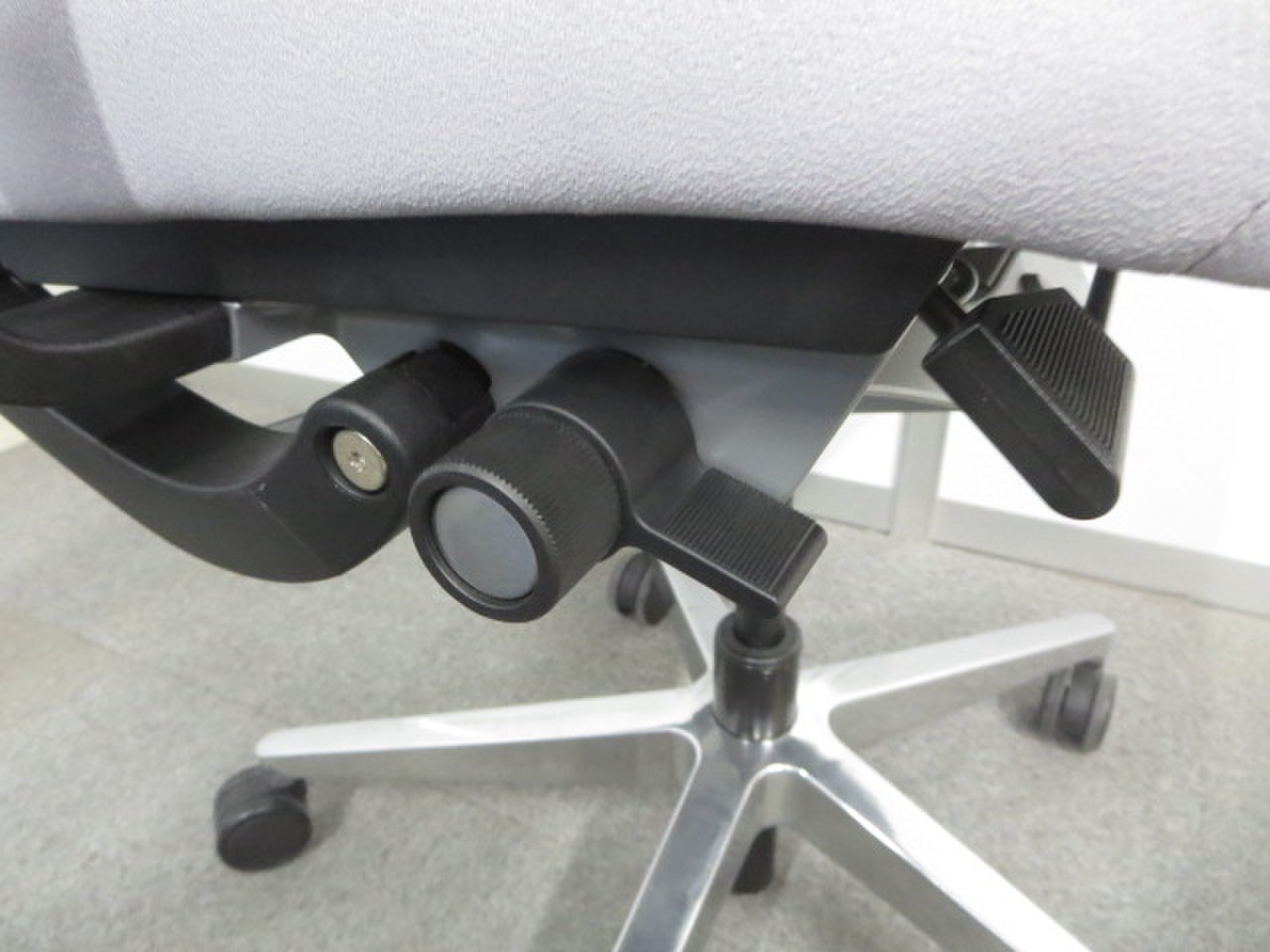 快適な座り心地に不可欠な調節機能である、上下昇降、座面の奥行き調整、リクライニングなどを備えており、操作もわかりやすく好評です。 特に、座面の奥行きは、座面下の左右に通った細いバーで調整でき、座ったままで軽やかに滑るように調整が可能です。 価格面では、新品では高めですが、中古は流通も多く、定価の3割前後の価格で高級チェアの座り心地を手に入れることができます!