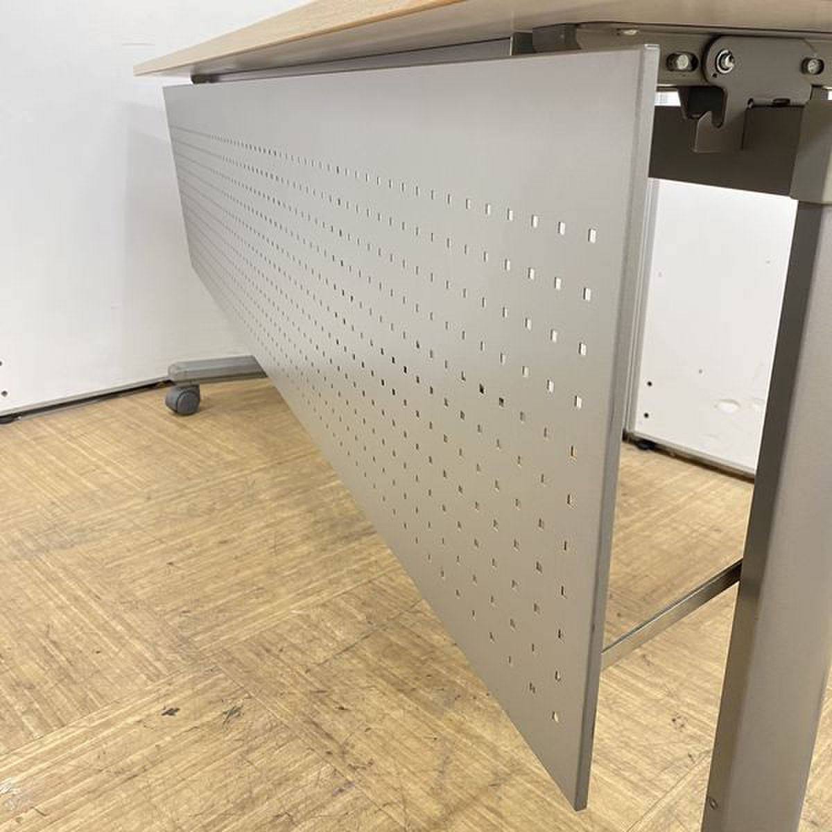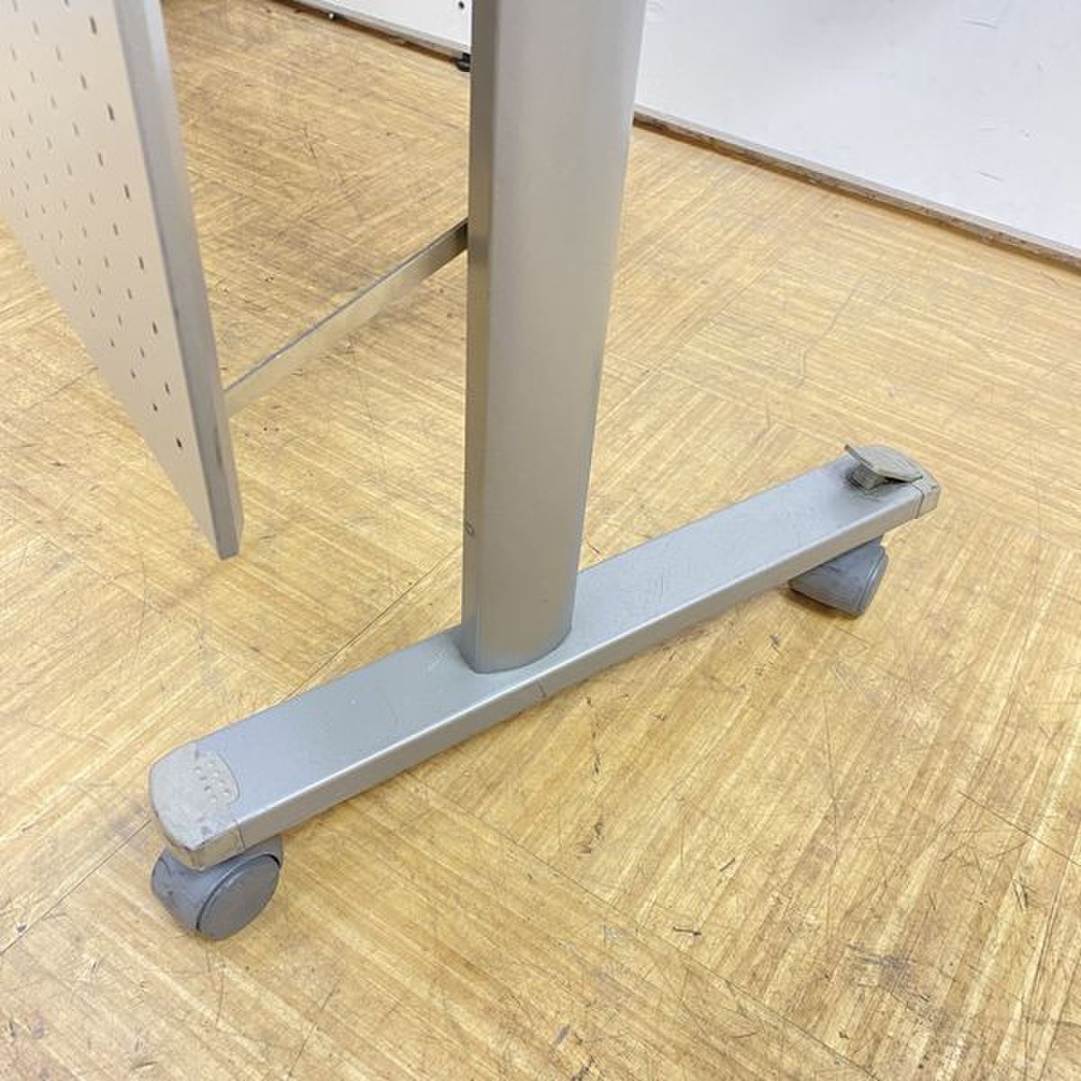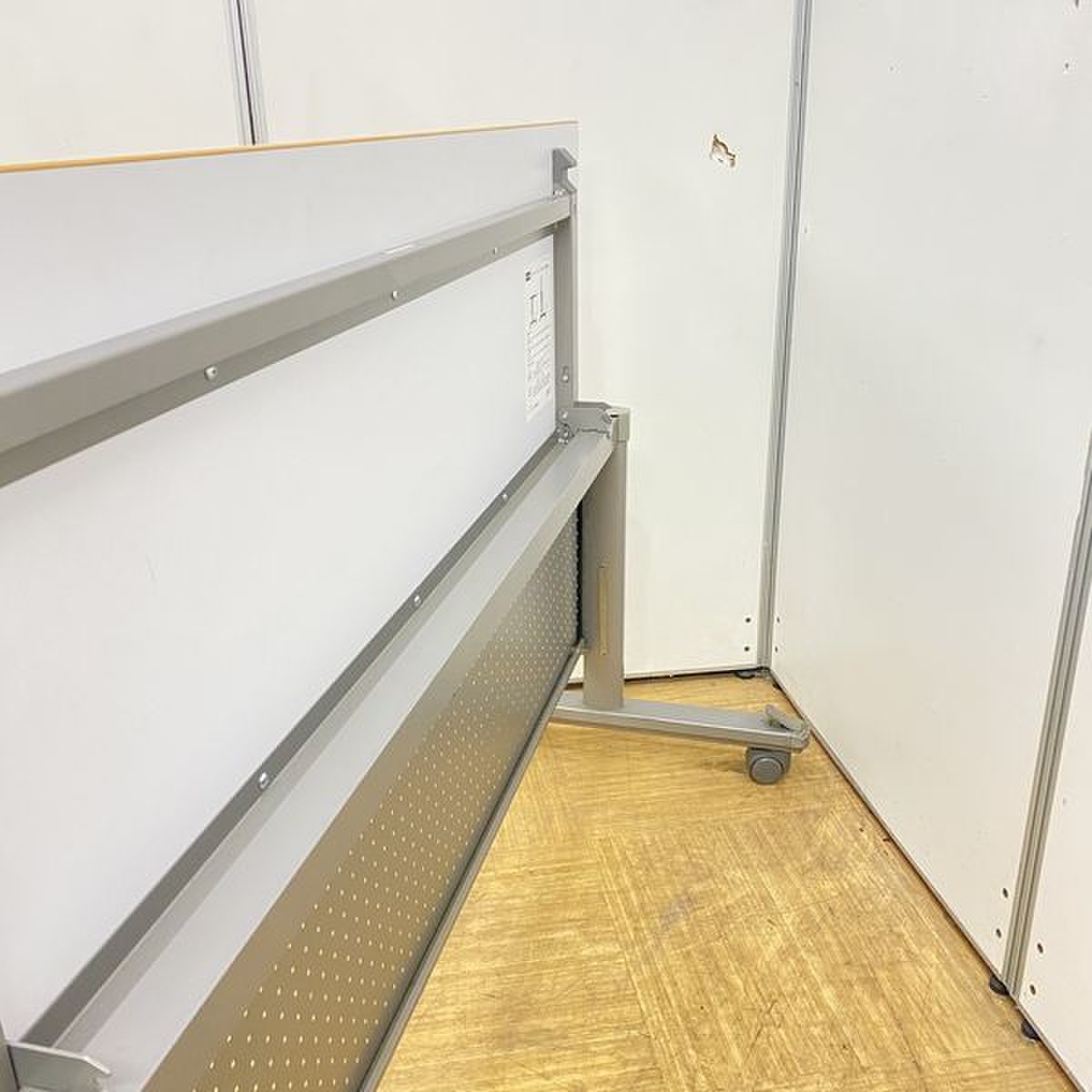 - 一部不具合あり天板歪み、アジャスター無し、キャスター使用不可ようなそのテーブルの本来の効用を果たすための機能以外の一部が使用不可な状態。(例、キャスターロッ ク機能使用不可、棚板無し等がある。)