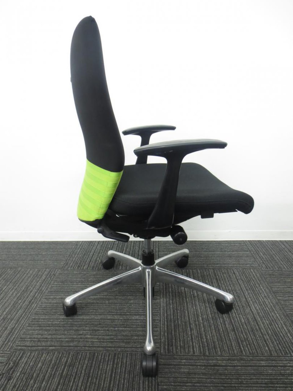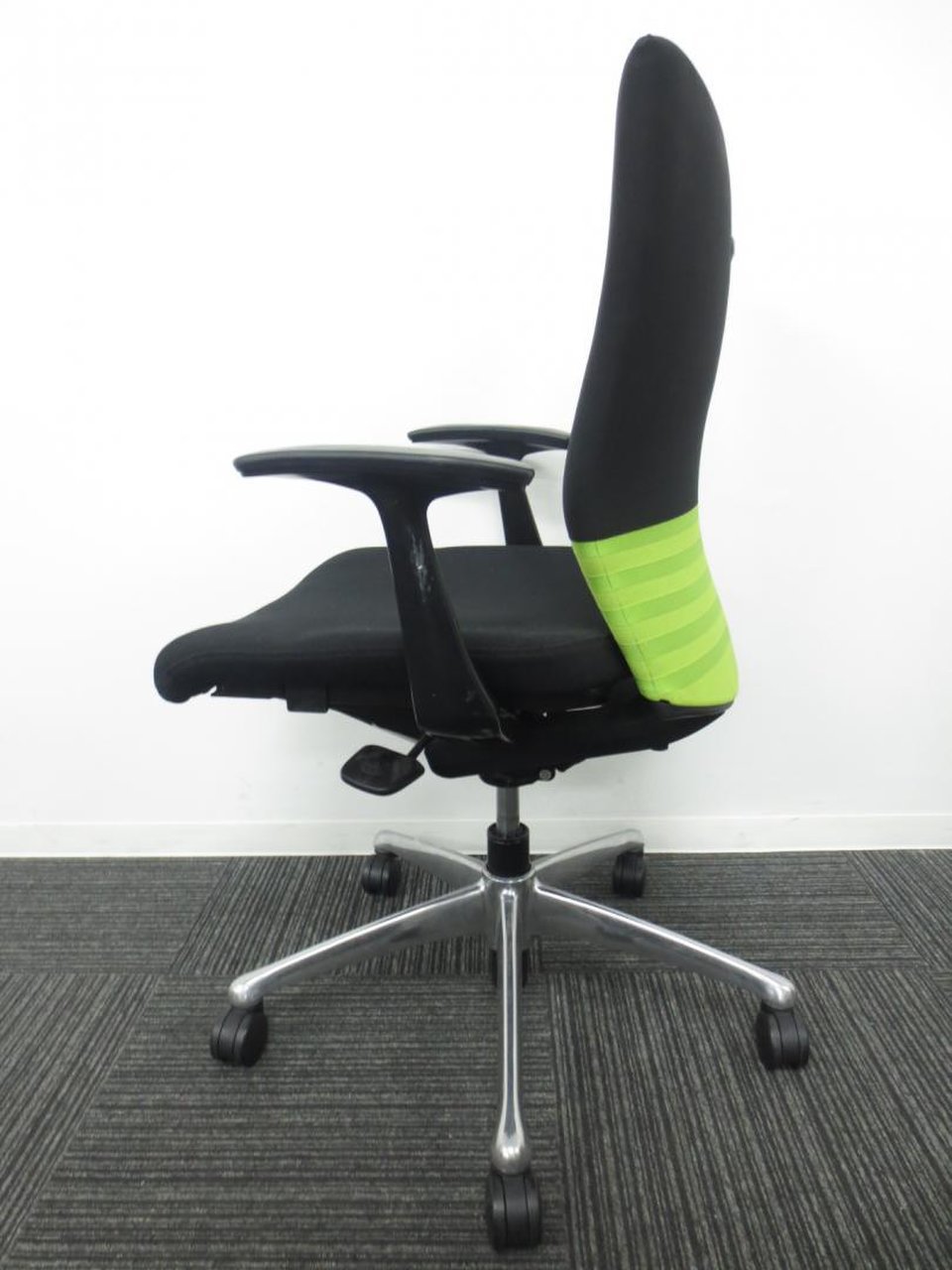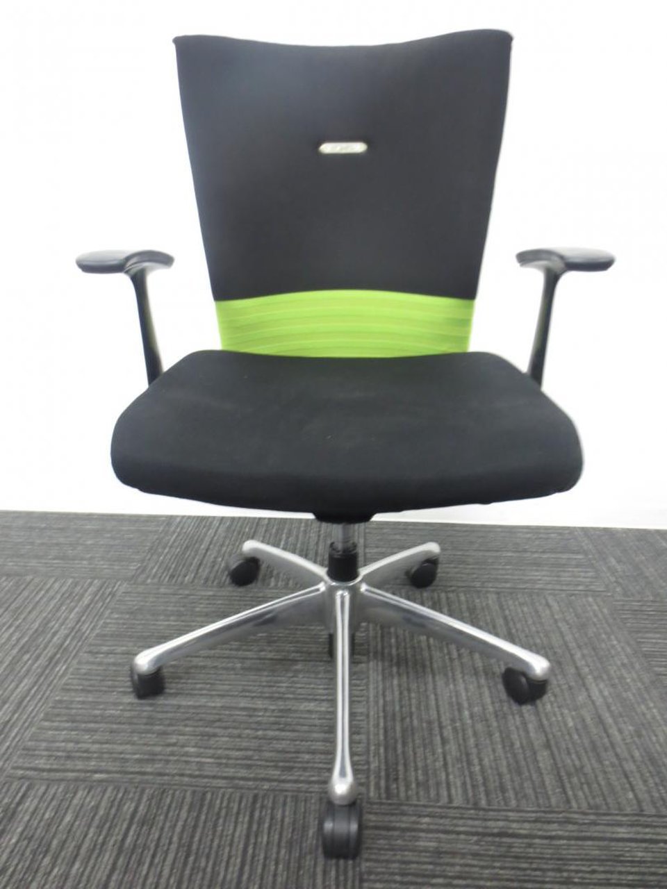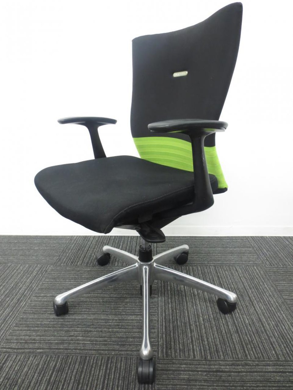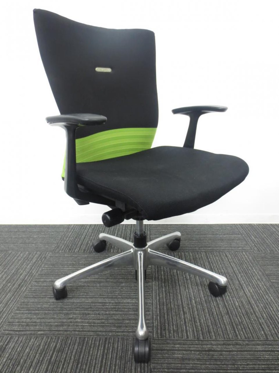 【人気商品】【残り3脚】オカムラ製 フィーゴ ブラック×グリーンカラー【肘付き】【リクライニング】